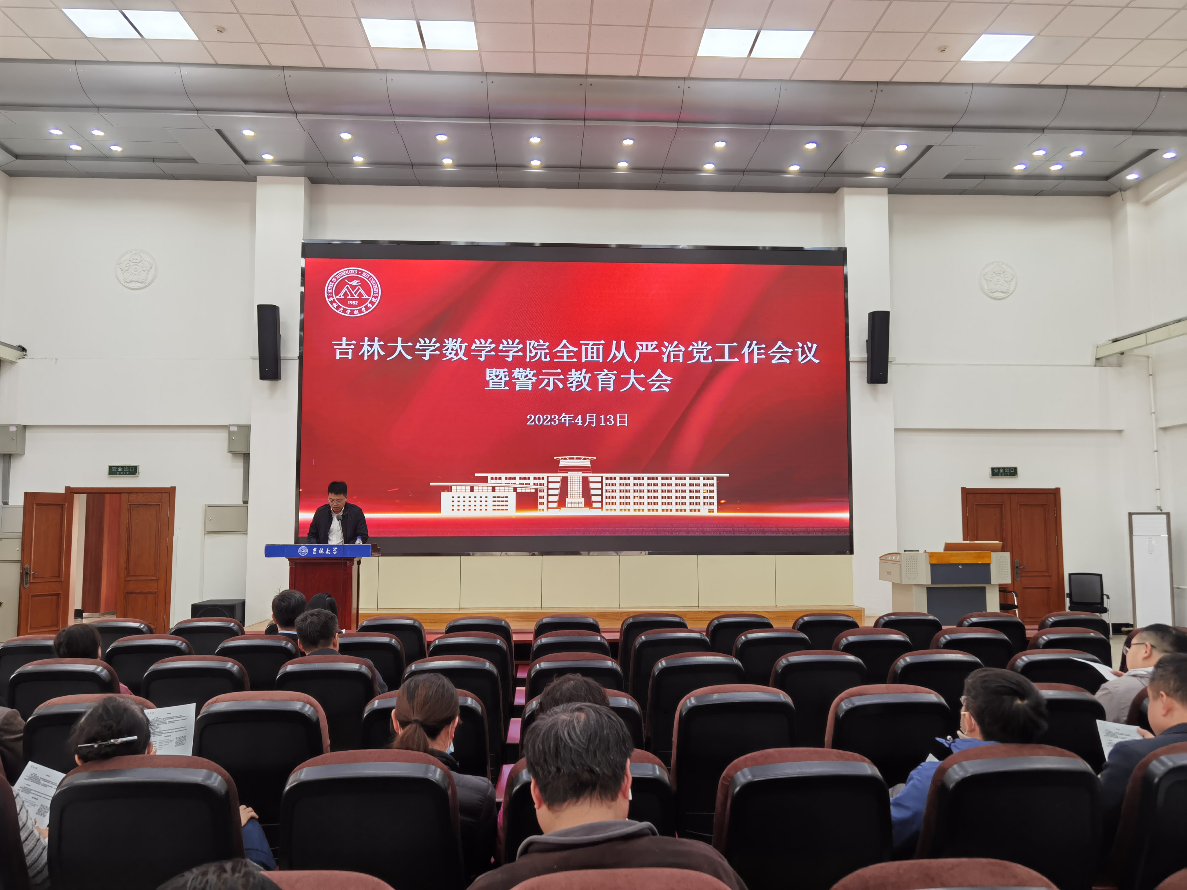 4月13日,数学学院在数学楼二楼报告厅召开2023年全面从严治党工作会议暨警示教育大会。数学学院全体教职工参加了本次会议,学院党委副书记兼副院长范庆文主持会议。