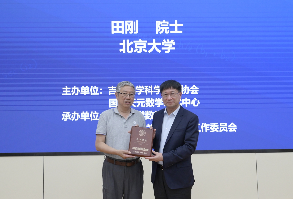 6月11日,中国科学院院士、北京大学讲席教授田刚做客吉林大学鼎新讲座,以“再谈欧拉数”为题,为吉大师生带来了一场精彩的学术讲座。中国科学院院士、吉林大学校长张希出席讲座并为田刚院士颁发“鼎新讲座纪念牌”。数学学院党委书记王春朋主持讲座。
