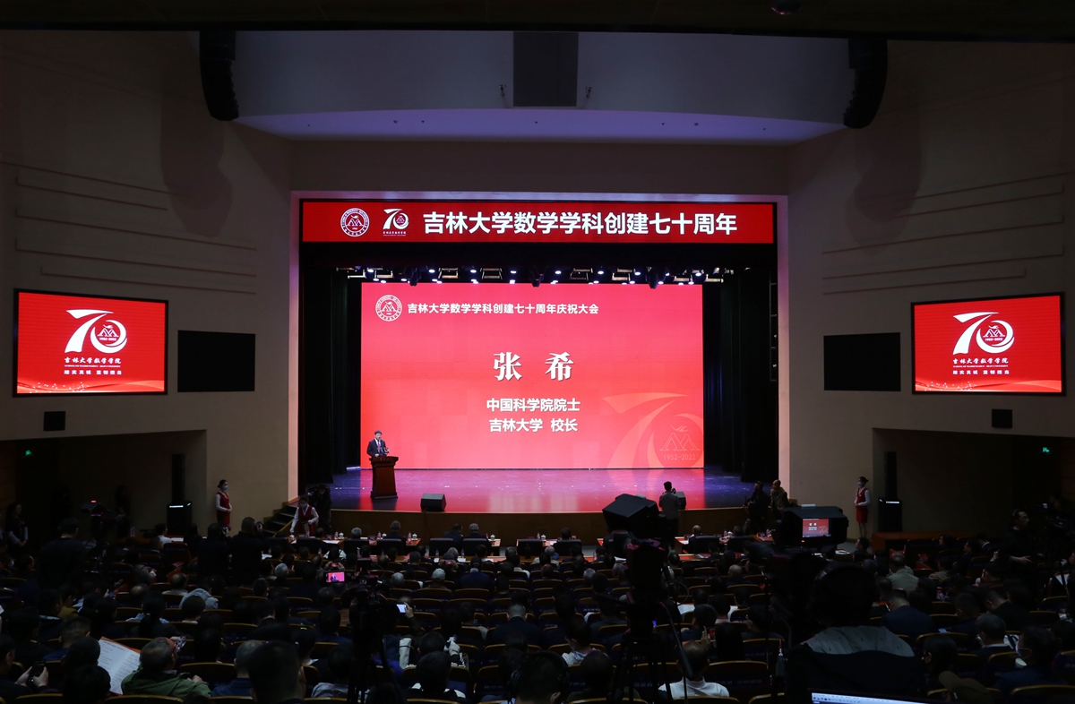 张希在致辞中表示,上世纪50年代初期,王湘浩、江泽坚、徐利治、谢邦杰、王柔怀、孙以丰等前辈先贤,响应国家号召,一路北上,组建吉林大学数学系,奠定了吉大数学学科的坚实基础,为国家建设的各个领域输送优秀人才,使吉大数学成为中国数学人才培养和科学研究的重要基地之一。建系初期编写的多部教材成为上个世纪60年代全国高校的通用教材,培养和影响了几代学人,对中国高等教育的发展产生了深远影响。作为吉林大学最早建立的基础学科之一,数学学科在国家历次重大学科战略布局中,均在首批之列。张希指出,70年来,吉大数学学科既面向数学前沿,求真求美,又聚焦国家战略需求,主动搭建高水平创新平台,承担重大科研任务,取得了多项重要科研成果。众多吉大数学学子在各自岗位上坚守奉献,为祖国的各项事业作出了重要贡献。张希强调,严谨务实、锐意创新、敢于人先是吉大数学人鲜明的特色。希望数学学科赓续传统,不断提高公共教学水平,为校内各相关专业的人才培养打下坚实的数理基础。以“数学+”为载体,与校内各专业领域开展科研合作,切实发挥数学对其他基础学科以及应用学科的支撑作用。同时,希望数学学科继续以一流学科建设为核心,进一步加强基础学科人才培养,提升原始创新能力,努力发挥国家天元数学东北中心、吉林国家应用数学中心等国家级平台的支撑作用,早日建成国家和区域重要的数学学科人才中心和创新高地。