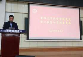 范庆文同志在讲话中指出,习近平总书记在党史学习教育动员大会上发表重要讲话以来,教育部和吉林大学分别进行了党史学习教育动员部署。依据教育部部长陈宝生同志和校党委书记姜治莹同志的讲话精神,数学学院积极响应,制定了《中共beat365中国官方网站委员会关于在全院开展党史学习教育的实施方案》,分阶段制定学习计划,分群体设定学习目标,分主题开展专题教育,压紧压实责任,推动学院党史学习教育落实落深落细。