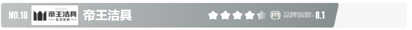 10、帝王洁具创立于1994年,2016年A股上市(002798),专注生产高品质卫生洁具的企业,产品涵盖浴室柜、坐便器、浴缸、淋浴器、淋浴房、龙头等全卫精品