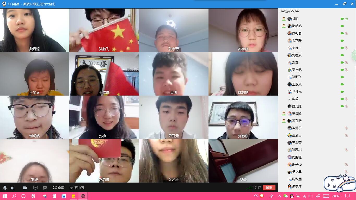 2020年5月29日,数学学院2018级5班采用视频会议的方式召开“雨涤新夏战疫先,数院齐心御时艰”线上主题班会。