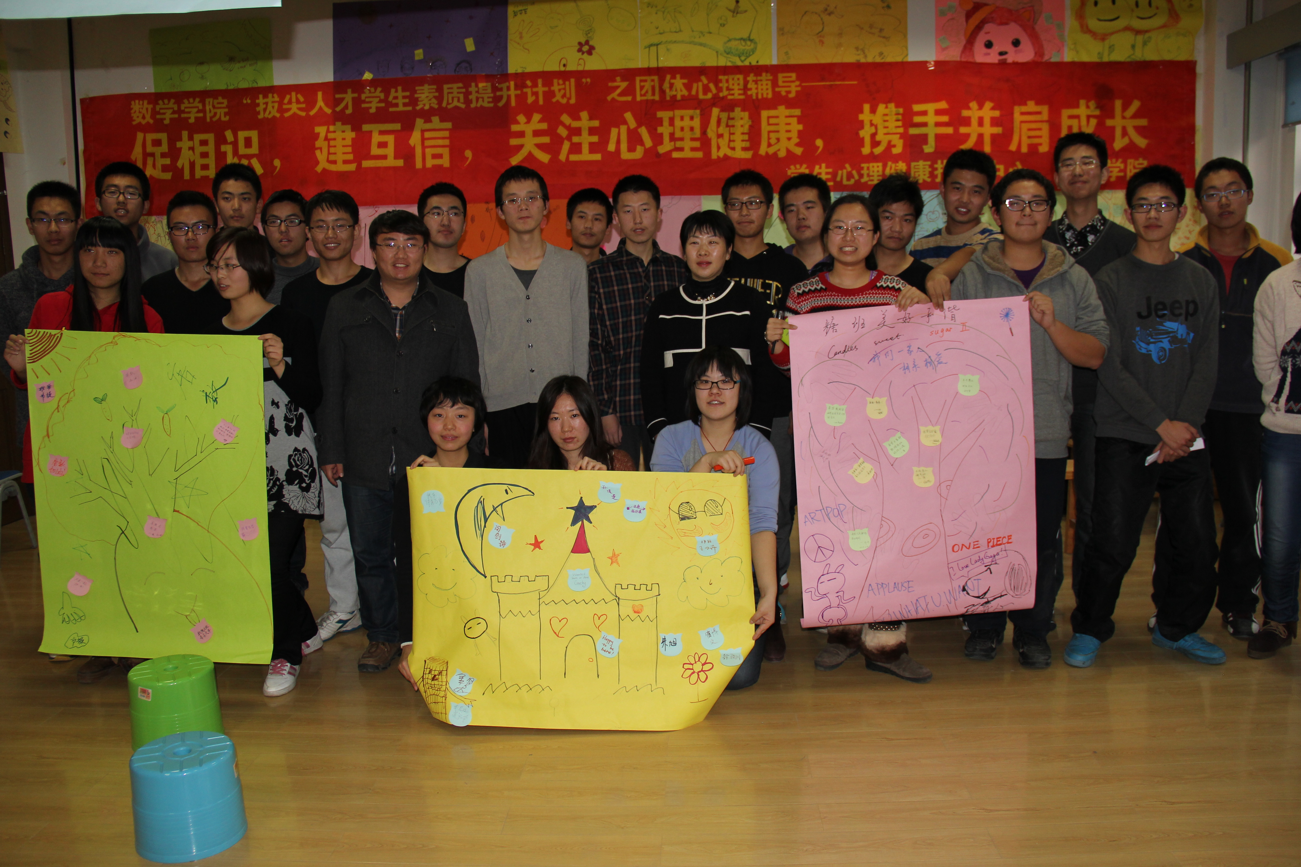 11月14日下午1:00,数学学院2011级和2013级唐敖庆班的同学们参与了由数学学院和学生心理健康指导中心组织的团队心理辅导活动。本次活动主题为“促相识,建互信,关注心理健康,携手并肩成长”。
