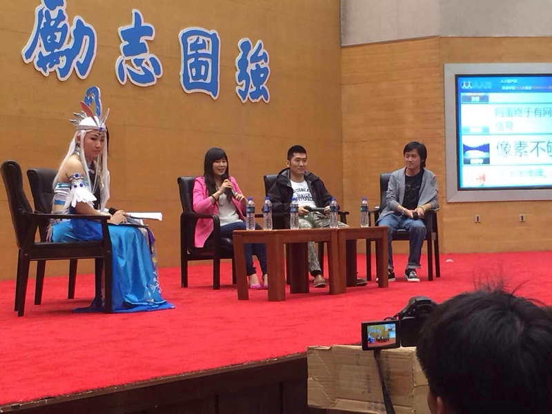 在主持人的介绍中,三位主创伴随学子们的热烈掌声正式登场并做了精彩的PPT解说,分享了《秦时明月》详细制作流程及品牌成长的故事,随后的访谈环节中,就大家特别关注的秦时明月制作技术问题,及关于未来秦时明月走向的问题,主创们精彩的回答,赢得现场阵阵掌声!