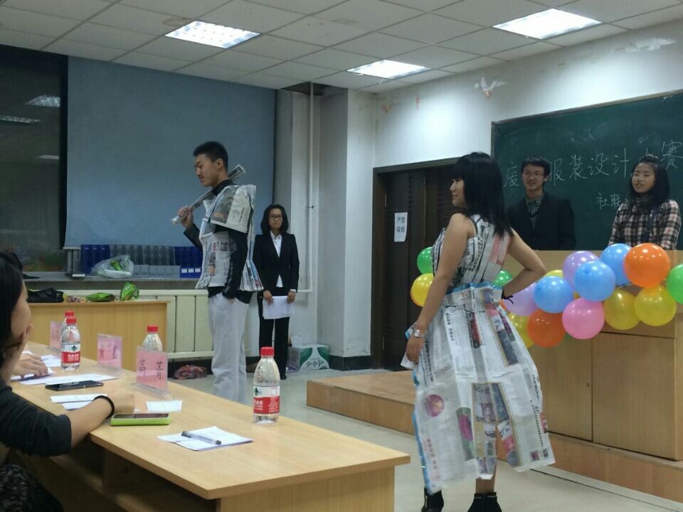 11月8日,晚六点,由数学学院社联秘书处主办的“废旧物品环保时装秀”在数学楼一楼报告厅顺利举行。学生会主席马思铭学长,数学学院社联主席黄鑫学长,社联副主席高菁学姐等嘉宾受邀出席本次活动并担任评委。