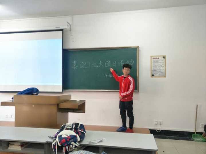 1018日,数学学院101601团支部开展“青春喜迎十九大不忘初心跟党走”专题学习活动。
