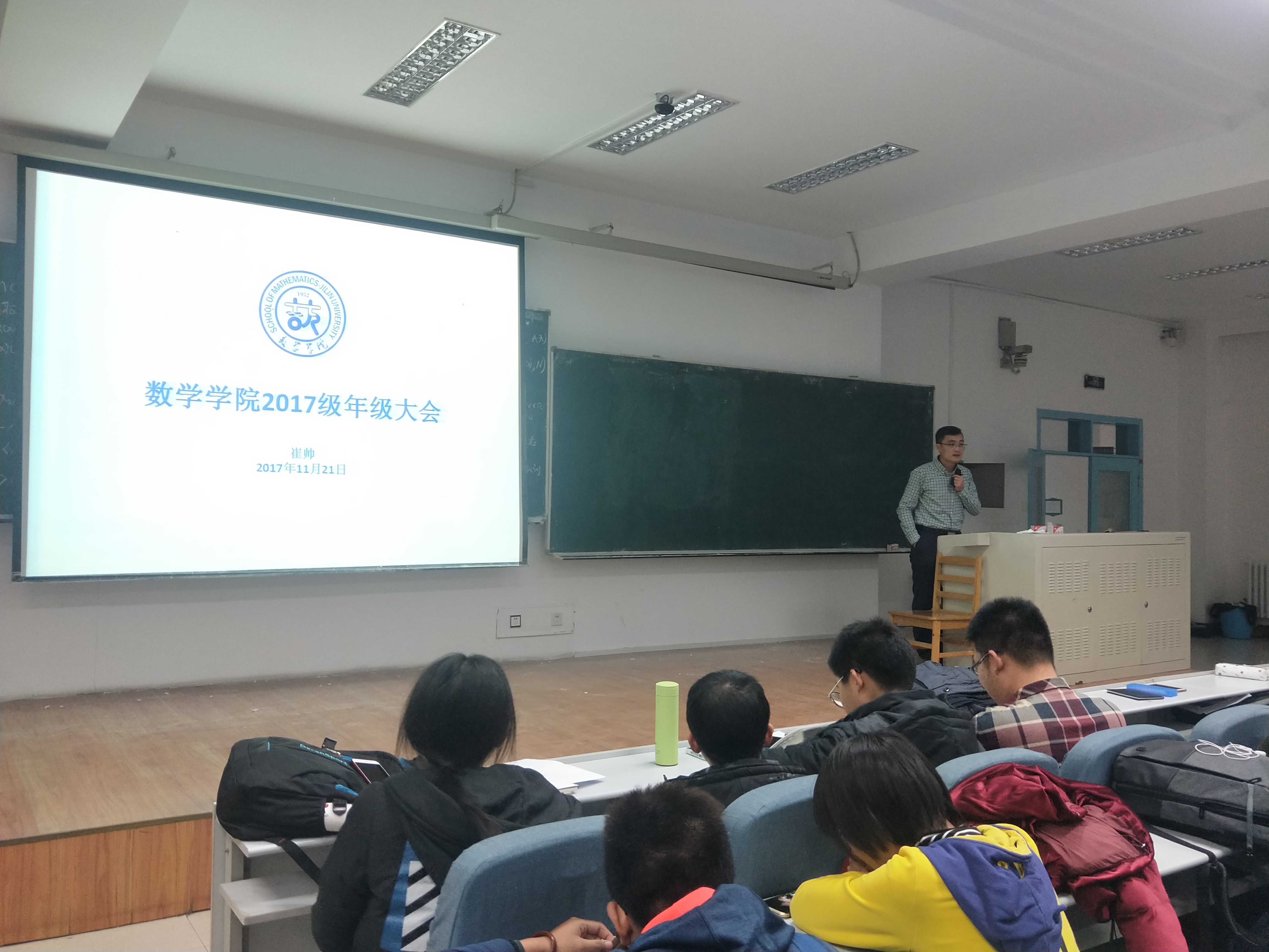 为了使数学学院2017级本科生进一步加快适应大学学习生活节奏,加深对数学专业的了解,加强组织意识和纪律意识,更好的应对大学第一次期末考试,数学学院2017级辅导员崔帅老师于2017年11月21日15:30,在第三教学楼第一阶梯教室召开了年级大会。