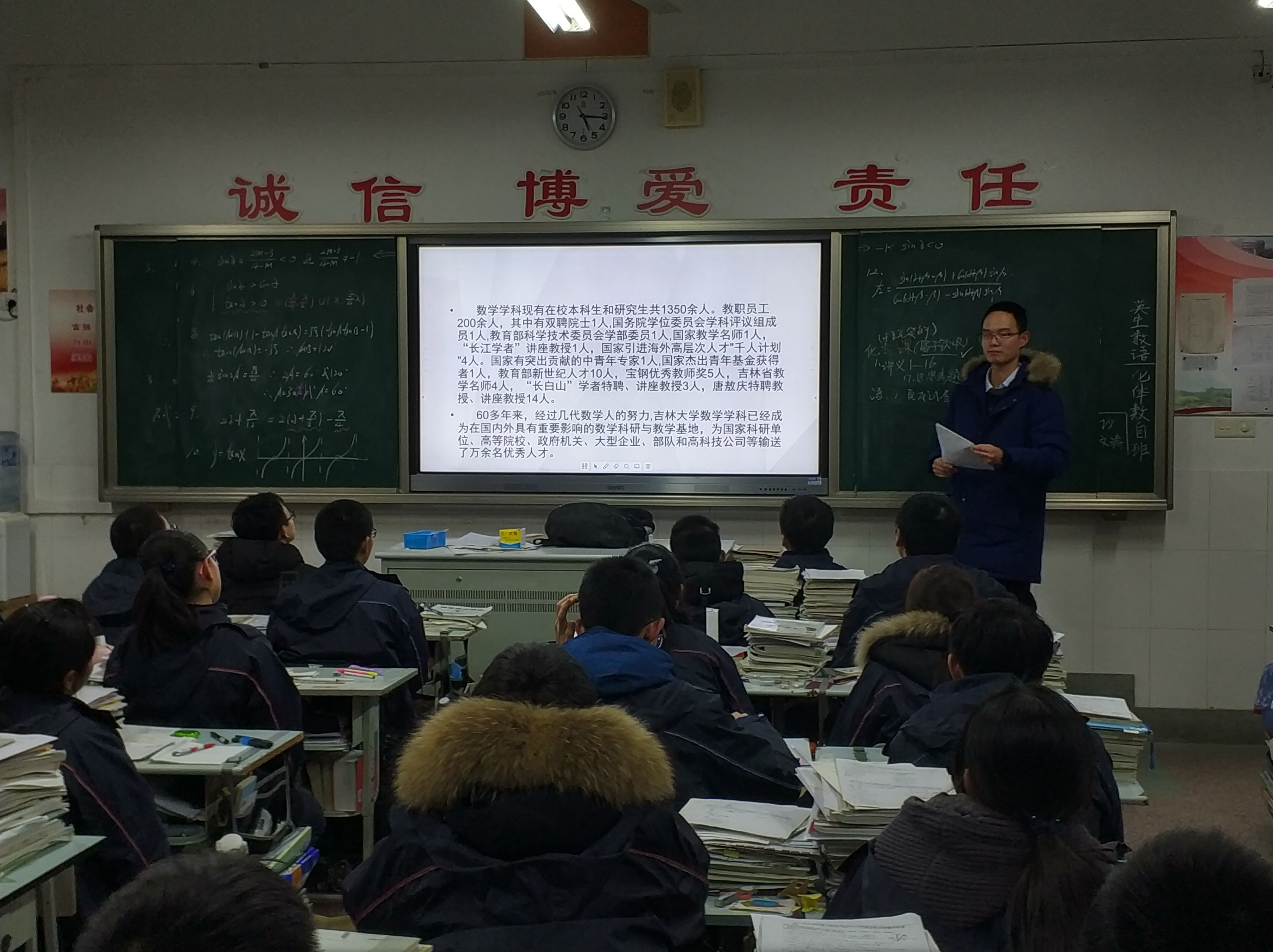数学学院101708团支部在寒假期间分别派出三支宣讲队伍前往江苏省天一中学、合肥六中、江苏新海高级中学进行宣讲,宣讲队成员发放了明信片与学校资料书,主要介绍了吉林大学的基本情况,并着重强调了唐敖庆理科试验班的办学特色和beat365中国官方网站的相关情况,包括学校强势学科,获得的荣誉,学校在全国高校的地位,以及我校试验班的安排。以江苏新海高级中学为例,他们向面临高考的高三学子介绍学长学姐眼中的大学,展现最真实的大学现状,向高三学子介绍学长学姐眼中的大学。本次活动突出吉林大学在高考报考中对于考生的高性价比,同时将吉林大学较为优越的学科条件,过硬的学校设备以及强大的师资队伍宣传给高三学子,提高了吉林大学作为优质学校在当地的知名度。成员们还与学弟学妹们分享了吉林大学的一些照片,学弟学妹们不时为吉林大学的优美环境发出阵阵赞叹。