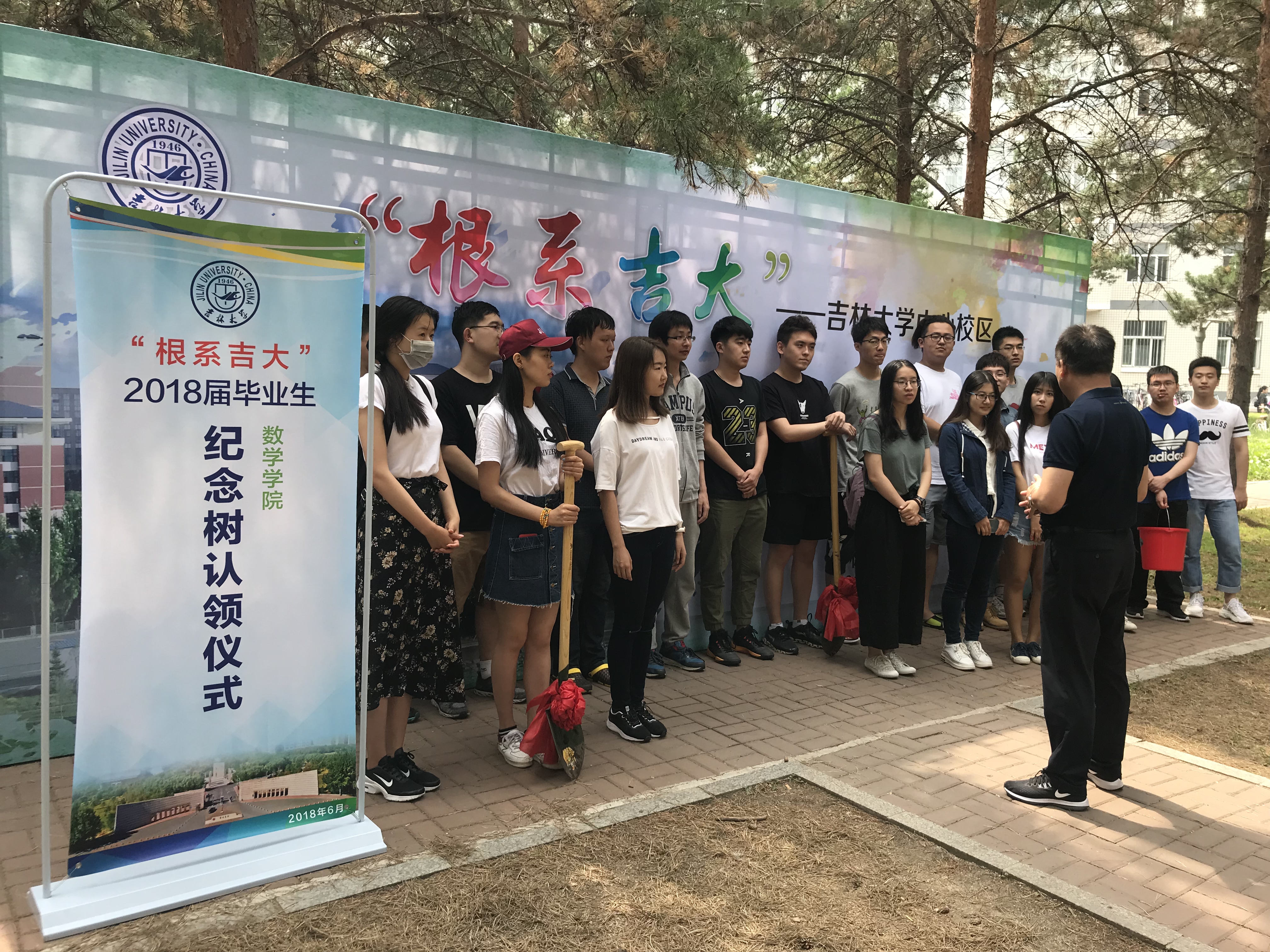 2018年6月13日上午9:30,数学学院举行“根系吉大”2018届毕业生纪念林认领仪式。数学学院党委副书记兼副院长范庆文、辅导员李庚以及毕业生代表参加本次仪式。