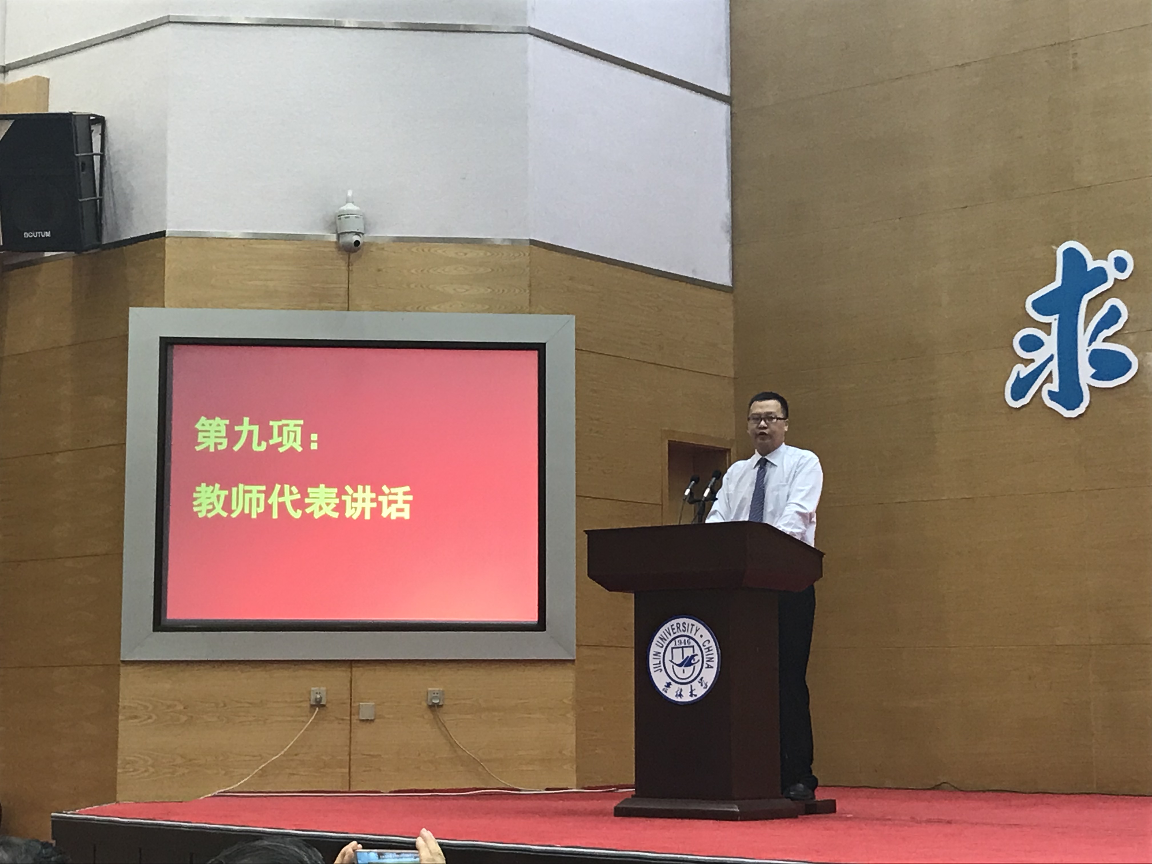 随后,吉林大学十佳大学生高溪远同学代表毕业生发言,韩玉柱副教授作为教师代表为毕业生送上祝福。最后,李辉来院长为毕业典礼致辞,向2018届毕业生提出了殷切希望,希望从吉大走出去的学生,能以更加博大的胸怀和包容的精神,能以改变世界的梦想力量和魂魄,成为伟大时代宏伟事业的缔造者和开拓者!