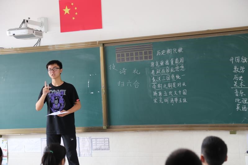次日早上七点,在当地学校领导老师的热烈欢迎和积极配合下,小“数”林支教团成功开幕。营城子中心校校长在开幕式发言时表示,希望这次为时一周的教学活动能给他们带来新的教学理念和方法,丰富孩子们的假期生活,激发孩子们的兴趣,在某些方面起到一个启蒙的作用,同时也希望大学生们在本次实践活动中有所收获,大手拉小手,共谱芳华。首先,支教队员帮助小朋友们系上红领巾,然后全体师生一起进行了升旗仪式。小朋友们站得整整齐齐,个个精神饱满,就像一棵棵小树苗。五星红旗冉冉升起,小树苗们会在这初升的太阳下慢慢茁壮成长。 支教队员为同学们带了一些小礼物,同学们开心地收下了崭新的小书包,文具盒和水杯。第一节是数学课,支教队员们准备了数学大闯关游戏,小朋友们积极抢答,课堂气氛十分活跃。尤其是判断题,同学们几乎全部站了起来同时喊出自己的答案。除了他们已经学过的知识,队员会在每道题之后拓展一些高年级知识,用生动形象的类比启发小朋友们的思维。历史课上,支教队员首先跟同学们讲了自己和历史的小故事以及对于历史的理解,告诉同学们学习历史的重要性。然后简要介绍了中华,上下五千年的发展历程,再根据同学们有所了解的东西进行讨论,对同学们想要了解的历史相关问题作出解答。希望通过这样的几节课能让同学们对历史有兴趣,在未来学习历史的时候一直有热情。接下来是美术课,队员准备了几个简单易学又受小朋友们欢迎的素材,同学们领完水彩笔和其他绘图工具之后认认真真地跟着老师画,一边画一边跟周围的小朋友讨论,给自己的作品构想了小故事。小朋友们都心灵手巧,又特别活跃,纷纷抢着展示自己的作品,还有小朋友将自己的作品送给支教队员留作纪念,非常可爱。最受小朋友欢迎的是音乐课,支教队员选了一些现在小学生中流行的歌曲,还有小朋友提出来想学的歌,课堂气氛相当活跃又不失秩序。经过了午休,下午第一节是地理课,队员们先请小朋友分享了自己的一些有关地理知识的认知和经历,然后简单介绍了几个省份的美丽景色和人文历史。小朋友们兴趣广泛,都积极回答老师提出的问题并且答案是正确的。支教队员还准备了几个国家的国旗和简单有趣的地理知识,最后收集了同学们想了解的东西以便下节课与同学们分享。接下来是英语课,支教队员先带着同学们认识了几个新单词,然后教同学们一首轻快的英文歌,小朋友学得非常快。英语老师温柔的声音和轻快的语调让同学们特别投入,当地校领导也对这堂课印象极好。