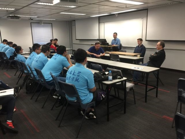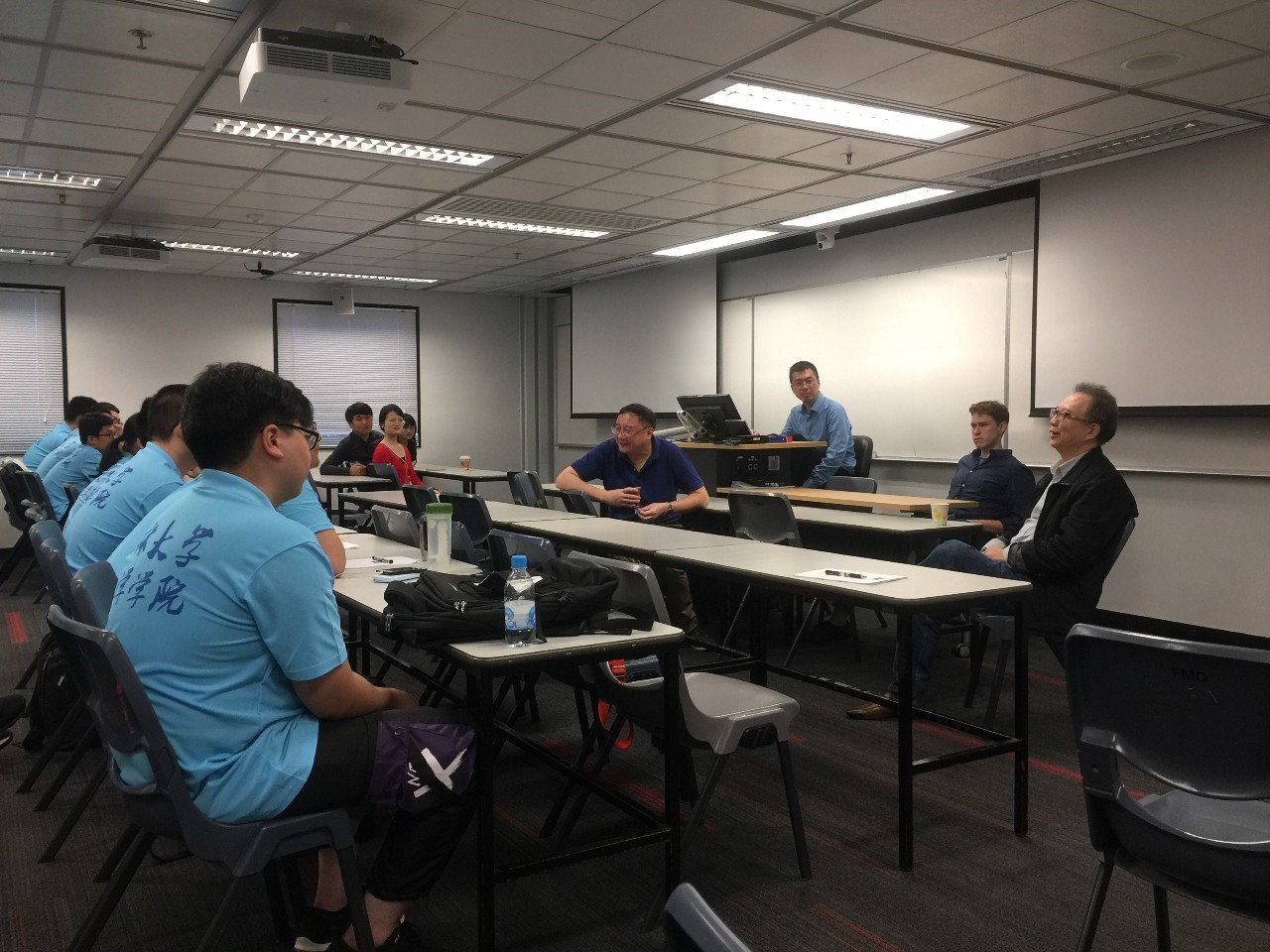 与名师交流,感触颇深,而在感受过知识的魅力后,我们又感受到了来自香港科技大学的温暖。下午,港科大的师哥师姐热心的为同学们讲解学校的人文、历史,天气虽然炎热,但师哥师姐们依旧认真的为我们介绍大学中的每一栋建筑以及学校的发展过程,耐心的回答同学们的问题,港科大的老师与师兄师姐们与同学们热情交流学术以及未来发展等各方面的问题,对于正处于毕业之际的我们,起到了十分大的帮助。在愉快开心的氛围中,学术交流小组的第一天旅程画上了圆满的句号。