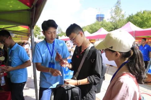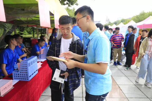 虽然今天的天气时而艳阳高照,时而下雨,但大家仍积极面对工作,迎新工作按流程有条不紊地进行。雨水也无法阻止新同学前来报到的脚步,同样无法熄灭老师和学弟学妹的热情。新同学向学长学姐们提出了很多关于学习和生活的问题,学长学姐们一一作出了详细的解答。报道之后,每个新同学都在学院“欢迎数学学院2019级新同学”的标牌上签下了自己的名字,并合影留念。