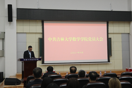 2021年10月21日,数学学院在数学楼二楼报告厅召开党员大会,选举数学学院党委出席中国共产党吉林大学第十五次代表大会代表。学校党建工作联络员高继成列席指导,学院党委书记张然主持大会。