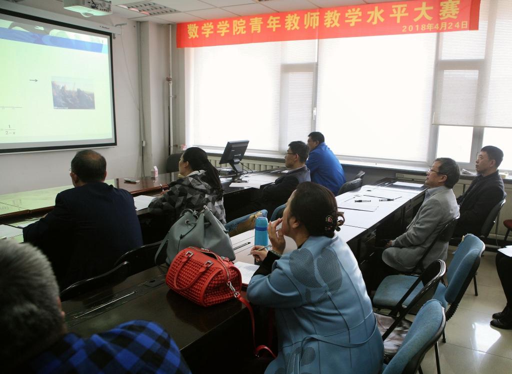 为进一步弘扬教学工作的主旋律,全面提高青年教师的职业素养和教学能力,选拔推荐优秀青年教师参加“吉林大学第八届青年教师教学水平大赛”,数学学院于2018424日在数学楼629室举办了“数学学院青年教师教学水平大赛”,院党委书记李晓光老师、教学委员会主任杜现昆教授及相关领导与各系主任出席了本次比赛并担任评委。竞赛由教学副院长王德辉教授主持。