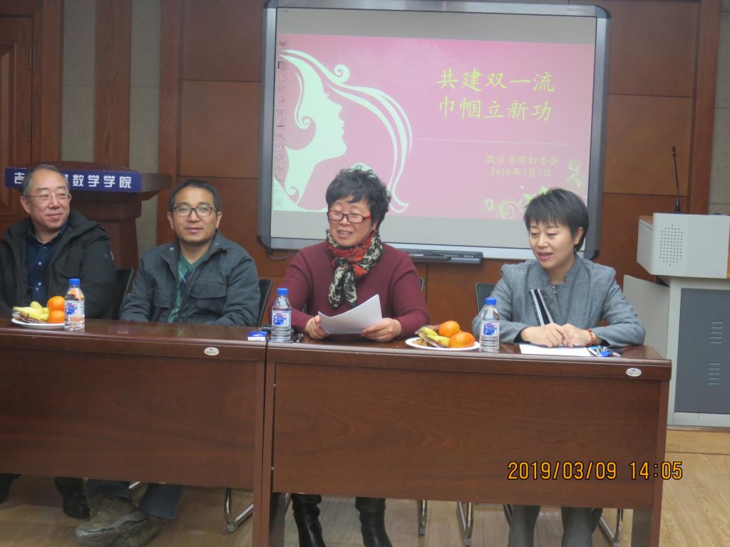 2019年3月7日下午2:00在数学楼一楼报告厅,数学学院妇委会举行了“共建双一流 巾帼立新功”为主题的座谈会。参加会议的有学校妇委会邹红副主任、学院部分女职工、学院班子成员以及部分系主任和党支部书记共50多人。