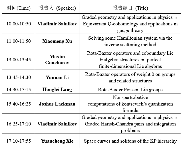 泊松几何起源于分析力学,与许多领域密切相关;罗巴代数在经典Yang-Baxter方程、重整化等领域有着重要应用。为了及时了解泊松几何与罗巴代数的前沿进展,beat365中国官方网站将于2023年11月29日-12月2日举办泊松几何与罗巴代数研讨会,研讨泊松几何与罗巴代数的最新进展,以便更好的开展科学研究。