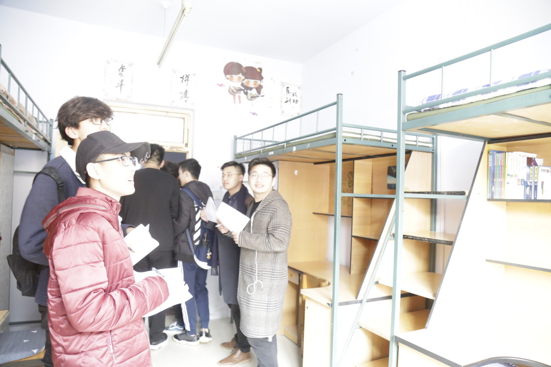 院检当天下午一点,生活部、女生部成员与主席团部分高年级学生干部前往大学城二、三公寓,检查19级卫生,同时主席团成员们互相讨论、打分,便于院检结束后评比出优秀寝室。
