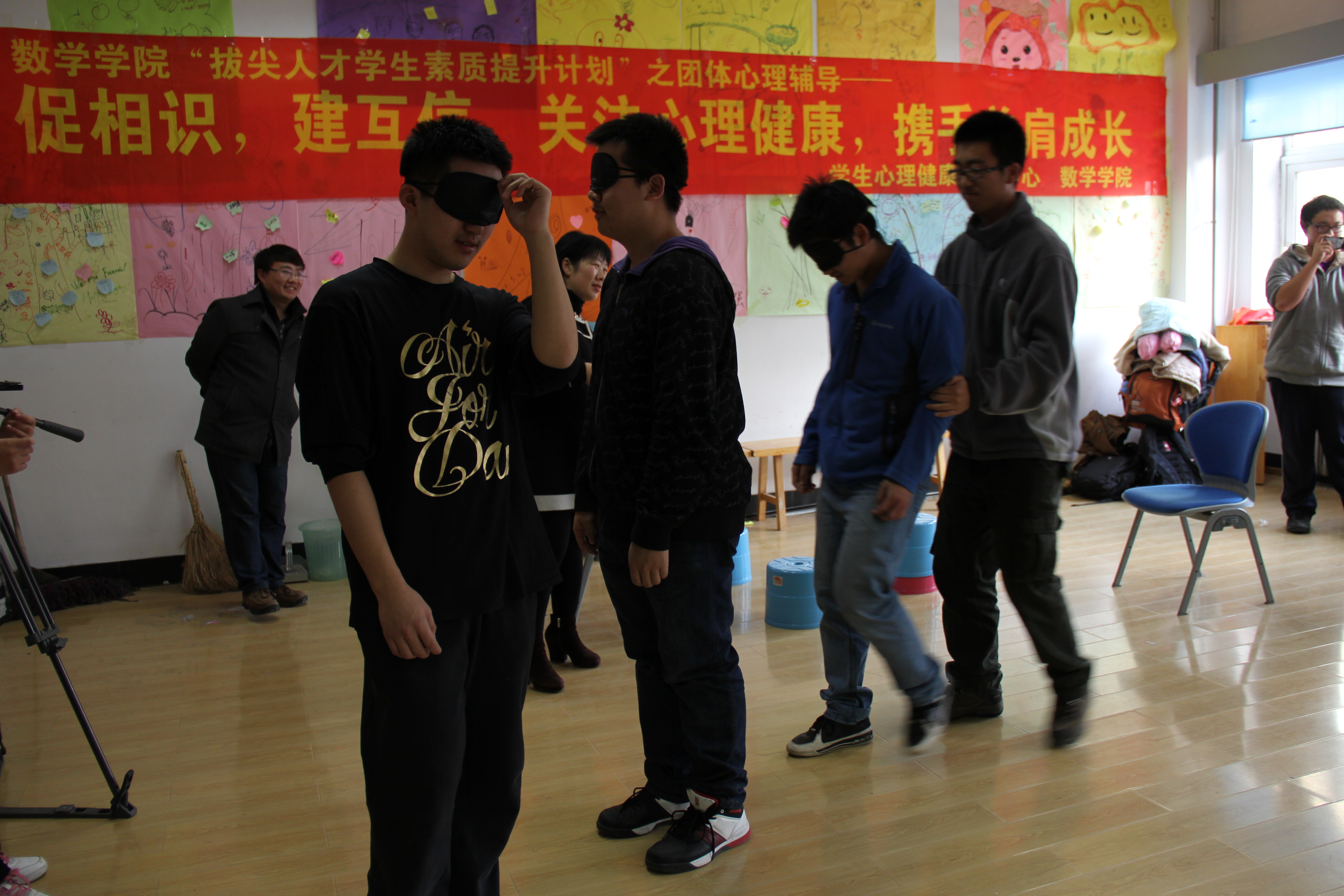 11月14日下午1:00,数学学院2011级和2013级唐敖庆班的同学们参与了由数学学院和学生心理健康指导中心组织的团队心理辅导活动。本次活动主题为“促相识,建互信,关注心理健康,携手并肩成长”。