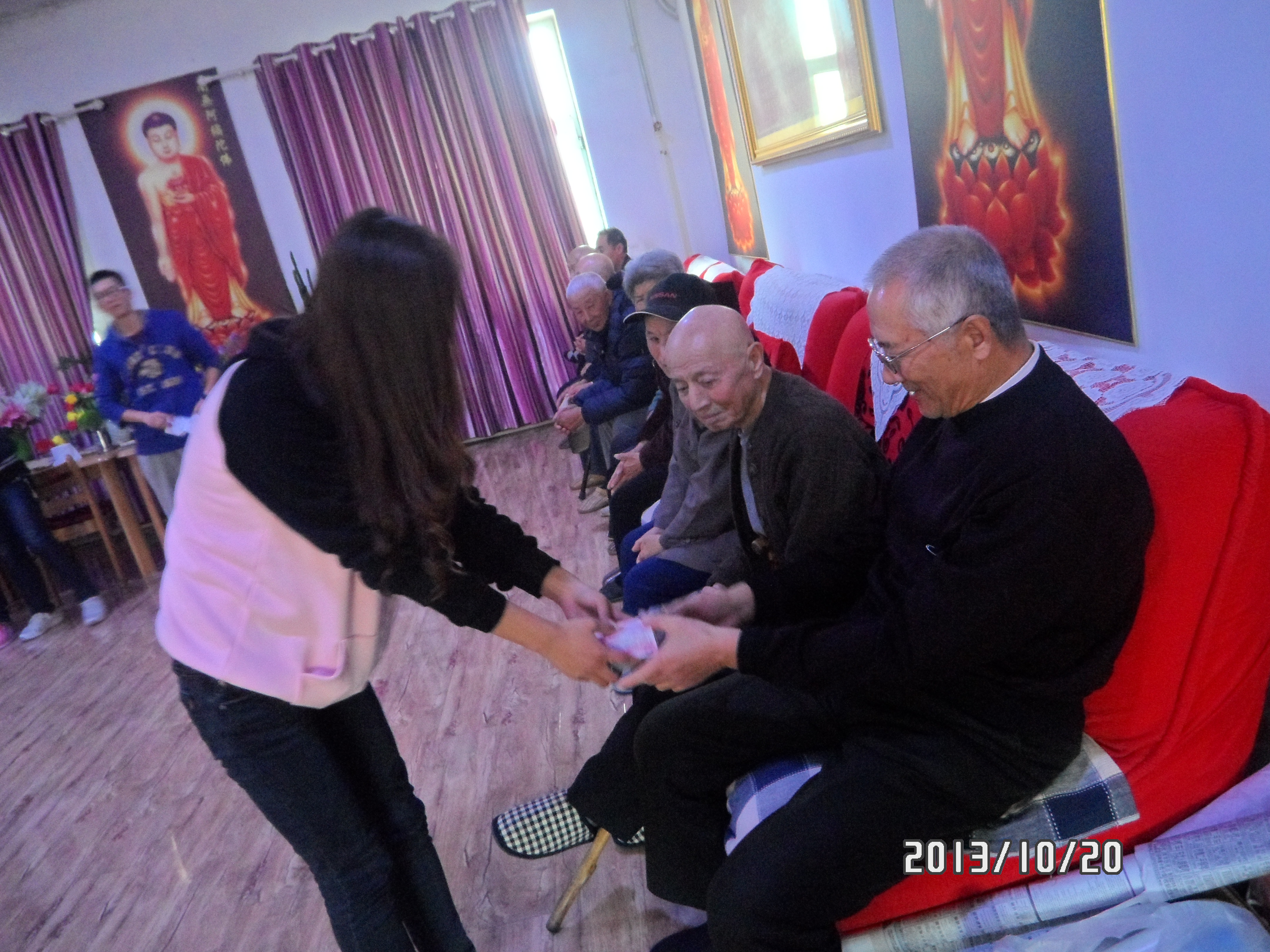 午饭时间,同学为老人包了饺子。饭后,志愿者又为老人表演了军体拳、二人转、猜红歌名等节目。同学们充满热情和活力的表演感染了在场的所有人,有一位老奶奶在同学手风琴的伴奏下演唱了一首《莫斯科郊外晚上的月亮》,敬老院院长也为大家唱了一首《感恩》,以此来教导同学们要谨记孝道。活动结束之际,同学们祝愿老人们健康长寿,与老人们依依惜别。