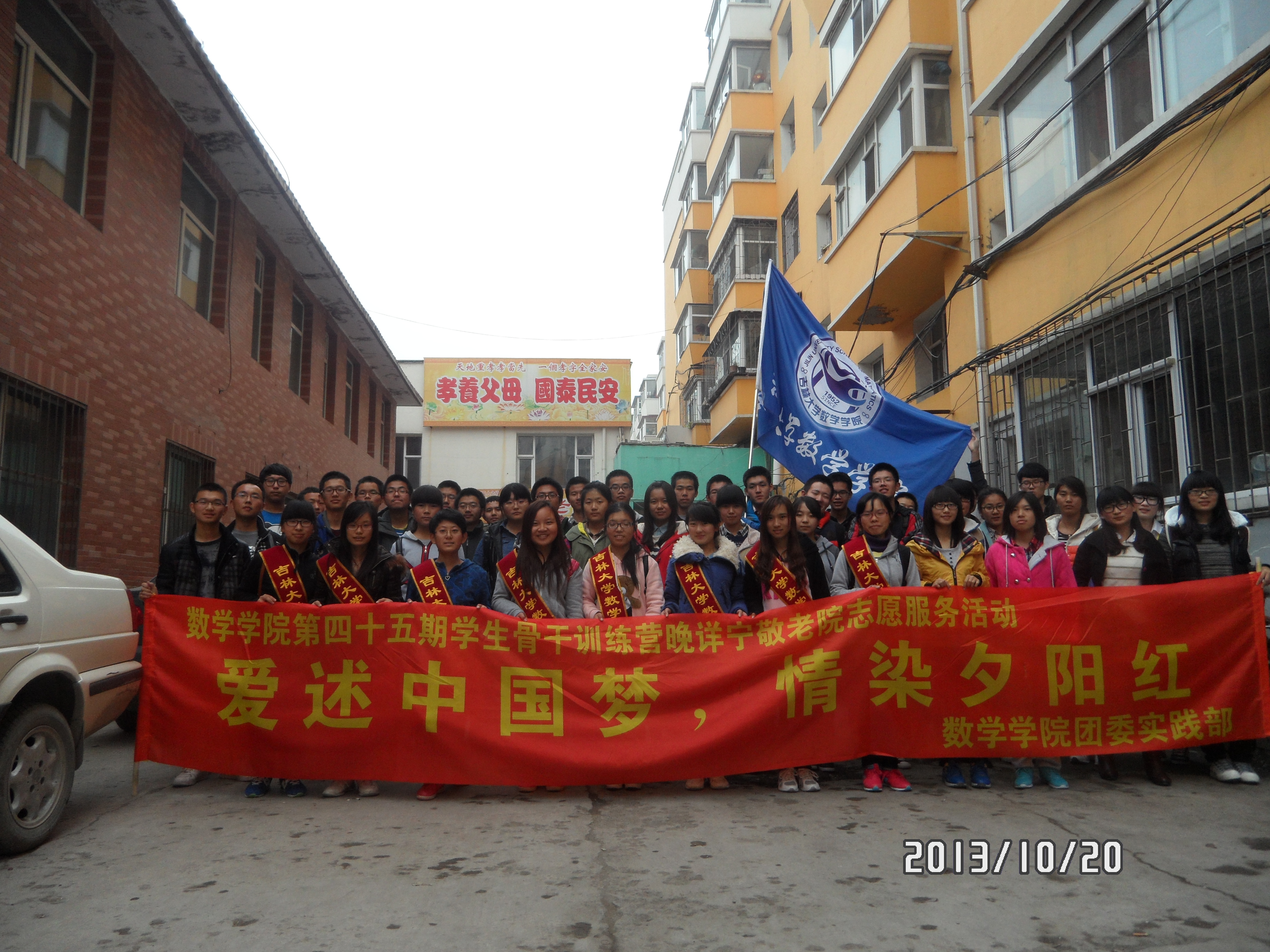 10月20日,beat365中国官方网站团委实践部带领2013级志愿者来到晚详宁养老院进行志愿服务。在敬老院,志愿者们陪伴老人聊天、唱歌,送去了最衷心的祝福,也收获了暖暖的感动,更体会到了肩上的责任。
