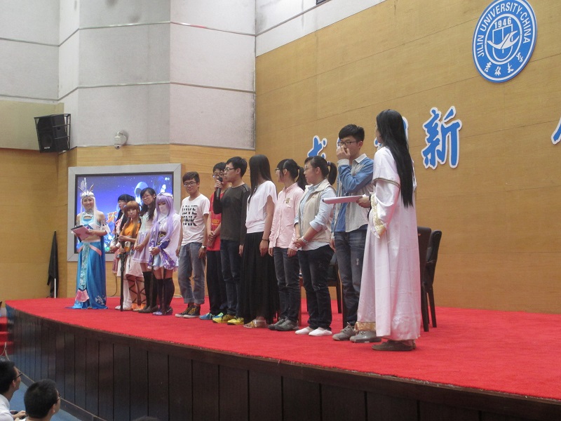 随着化身《秦时明月》剧中高渐离、雪女的主持人入场,备受瞩目的“秦时千里 明月相伴”秦时明月吉大宣讲会于18:00正式开始!一首悠扬的歌曲为观众们开启了如梦似幻的秦时明月Cosplay表演之旅,一舞倾城中的雪女经典动作、盖聂卫庄的巅峰对决,博得了现场满堂喝彩,片中人气角色一一登场,尖叫声不断,随后《秦时明月》TV版经典主题曲《月光》响起,所有coser 以经典pose齐齐亮相,秀出印有“秦时明月”古风字样的水墨条幅,将全场的气氛推向高潮!