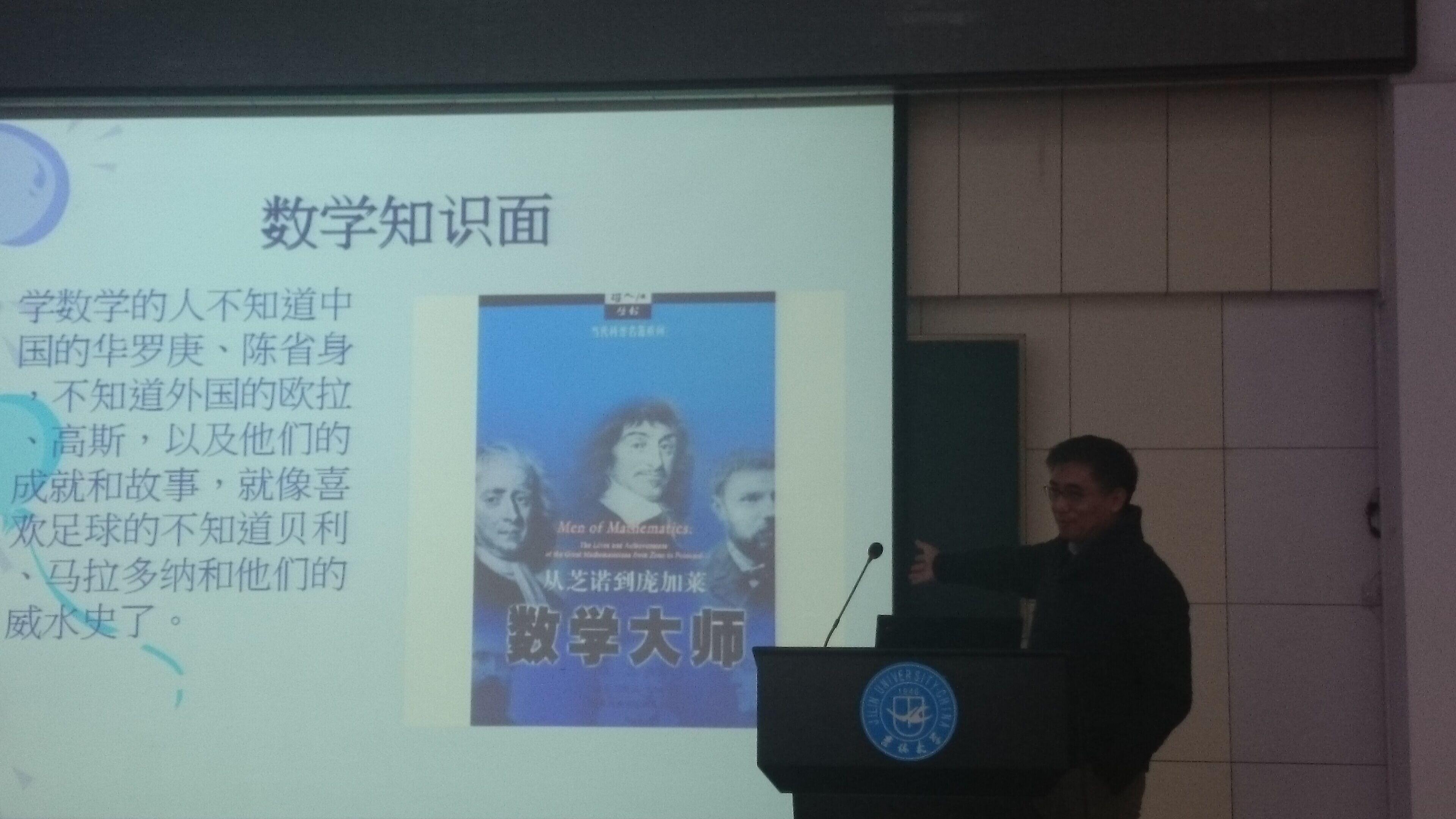 11月8日上午9点半,数学学院邀请香港浸会大学副校长、《数学文化》主编汤涛教授为同学们做主题为“数学微文化”的讲座。出席讲座的有数学学院院长兼公共数学中心主任李辉来教授,公共数学中心副主任张然教授,数学学院党委副书记兼副院长赵任老师。