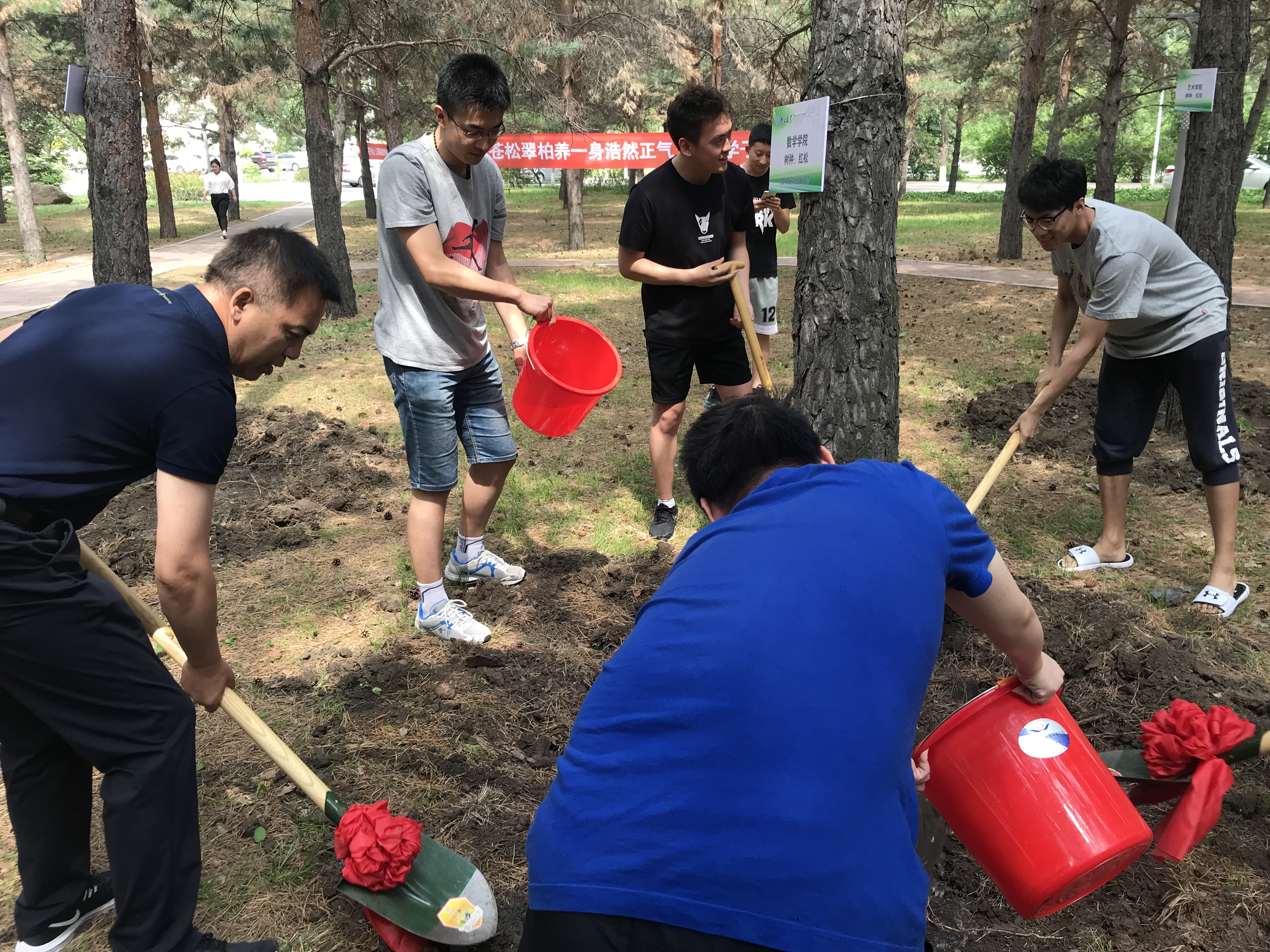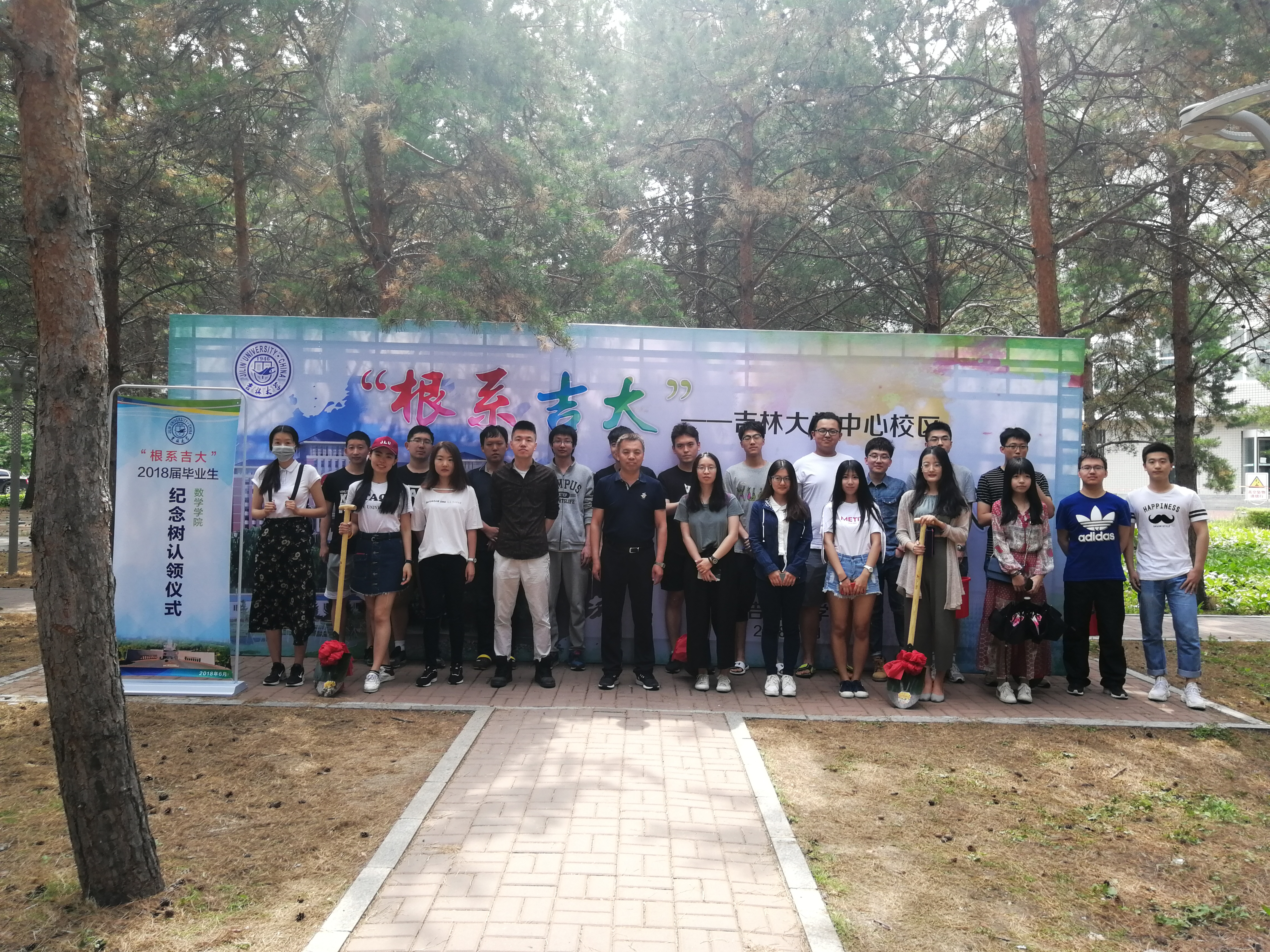 2018年6月13日上午9:30,数学学院举行“根系吉大”2018届毕业生纪念林认领仪式。数学学院党委副书记兼副院长范庆文、辅导员李庚以及毕业生代表参加本次仪式。