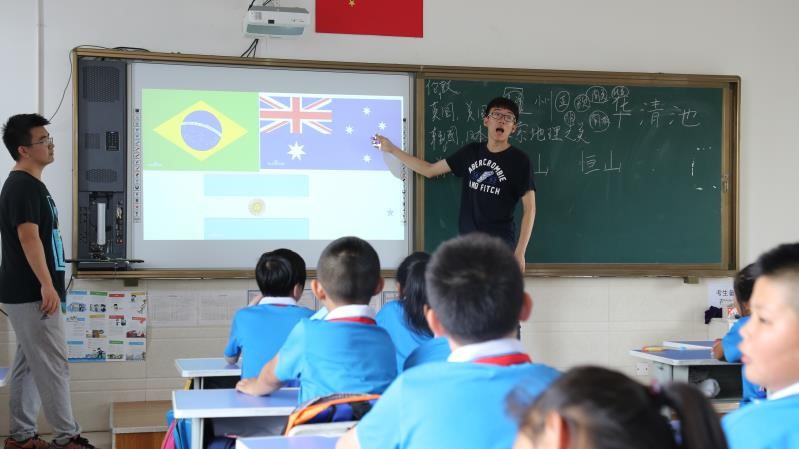 次日早上七点,在当地学校领导老师的热烈欢迎和积极配合下,小“数”林支教团成功开幕。营城子中心校校长在开幕式发言时表示,希望这次为时一周的教学活动能给他们带来新的教学理念和方法,丰富孩子们的假期生活,激发孩子们的兴趣,在某些方面起到一个启蒙的作用,同时也希望大学生们在本次实践活动中有所收获,大手拉小手,共谱芳华。首先,支教队员帮助小朋友们系上红领巾,然后全体师生一起进行了升旗仪式。小朋友们站得整整齐齐,个个精神饱满,就像一棵棵小树苗。五星红旗冉冉升起,小树苗们会在这初升的太阳下慢慢茁壮成长。 支教队员为同学们带了一些小礼物,同学们开心地收下了崭新的小书包,文具盒和水杯。第一节是数学课,支教队员们准备了数学大闯关游戏,小朋友们积极抢答,课堂气氛十分活跃。尤其是判断题,同学们几乎全部站了起来同时喊出自己的答案。除了他们已经学过的知识,队员会在每道题之后拓展一些高年级知识,用生动形象的类比启发小朋友们的思维。历史课上,支教队员首先跟同学们讲了自己和历史的小故事以及对于历史的理解,告诉同学们学习历史的重要性。然后简要介绍了中华,上下五千年的发展历程,再根据同学们有所了解的东西进行讨论,对同学们想要了解的历史相关问题作出解答。希望通过这样的几节课能让同学们对历史有兴趣,在未来学习历史的时候一直有热情。接下来是美术课,队员准备了几个简单易学又受小朋友们欢迎的素材,同学们领完水彩笔和其他绘图工具之后认认真真地跟着老师画,一边画一边跟周围的小朋友讨论,给自己的作品构想了小故事。小朋友们都心灵手巧,又特别活跃,纷纷抢着展示自己的作品,还有小朋友将自己的作品送给支教队员留作纪念,非常可爱。最受小朋友欢迎的是音乐课,支教队员选了一些现在小学生中流行的歌曲,还有小朋友提出来想学的歌,课堂气氛相当活跃又不失秩序。经过了午休,下午第一节是地理课,队员们先请小朋友分享了自己的一些有关地理知识的认知和经历,然后简单介绍了几个省份的美丽景色和人文历史。小朋友们兴趣广泛,都积极回答老师提出的问题并且答案是正确的。支教队员还准备了几个国家的国旗和简单有趣的地理知识,最后收集了同学们想了解的东西以便下节课与同学们分享。接下来是英语课,支教队员先带着同学们认识了几个新单词,然后教同学们一首轻快的英文歌,小朋友学得非常快。英语老师温柔的声音和轻快的语调让同学们特别投入,当地校领导也对这堂课印象极好。