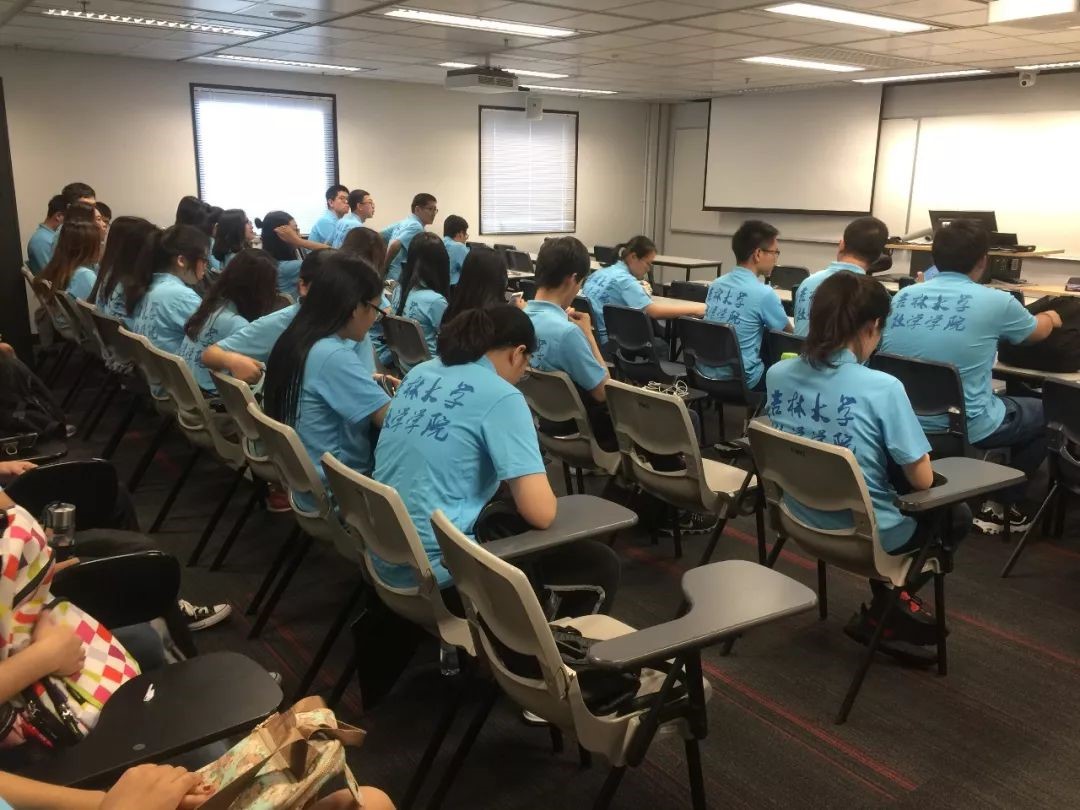 与名师交流,感触颇深,而在感受过知识的魅力后,我们又感受到了来自香港科技大学的温暖。下午,港科大的师哥师姐热心的为同学们讲解学校的人文、历史,天气虽然炎热,但师哥师姐们依旧认真的为我们介绍大学中的每一栋建筑以及学校的发展过程,耐心的回答同学们的问题,港科大的老师与师兄师姐们与同学们热情交流学术以及未来发展等各方面的问题,对于正处于毕业之际的我们,起到了十分大的帮助。在愉快开心的氛围中,学术交流小组的第一天旅程画上了圆满的句号。