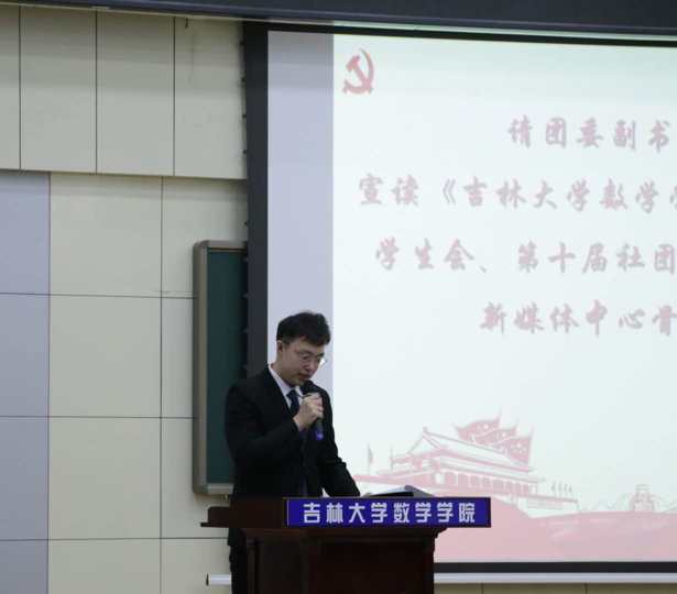 学生会主席邱韵进行了发言,代表全体学生干部感谢了学院领导、老师及全体同学对团学社媒所有工作的支持和配合。邱韵讲到,数学学院团学社媒是学院联系学生的桥梁和纽带,是切实为同学们服务的学生组织团体,希望全体学生干部领会团中央学校部发布的“学生干部自律公约”的内容,努力建设充满朝气、干净纯粹的组织文化,营造务实担当、不怕困难、勇于创新和干净纯粹的工作氛围。接着2018级的学生干部代表侯頔进行了发言,侯頔代表团学社媒的新成员感谢了学院领导、老师对同学们对关怀,表达了进入学生组织的激动心情并对未来的学生工作作出了承诺和展望。