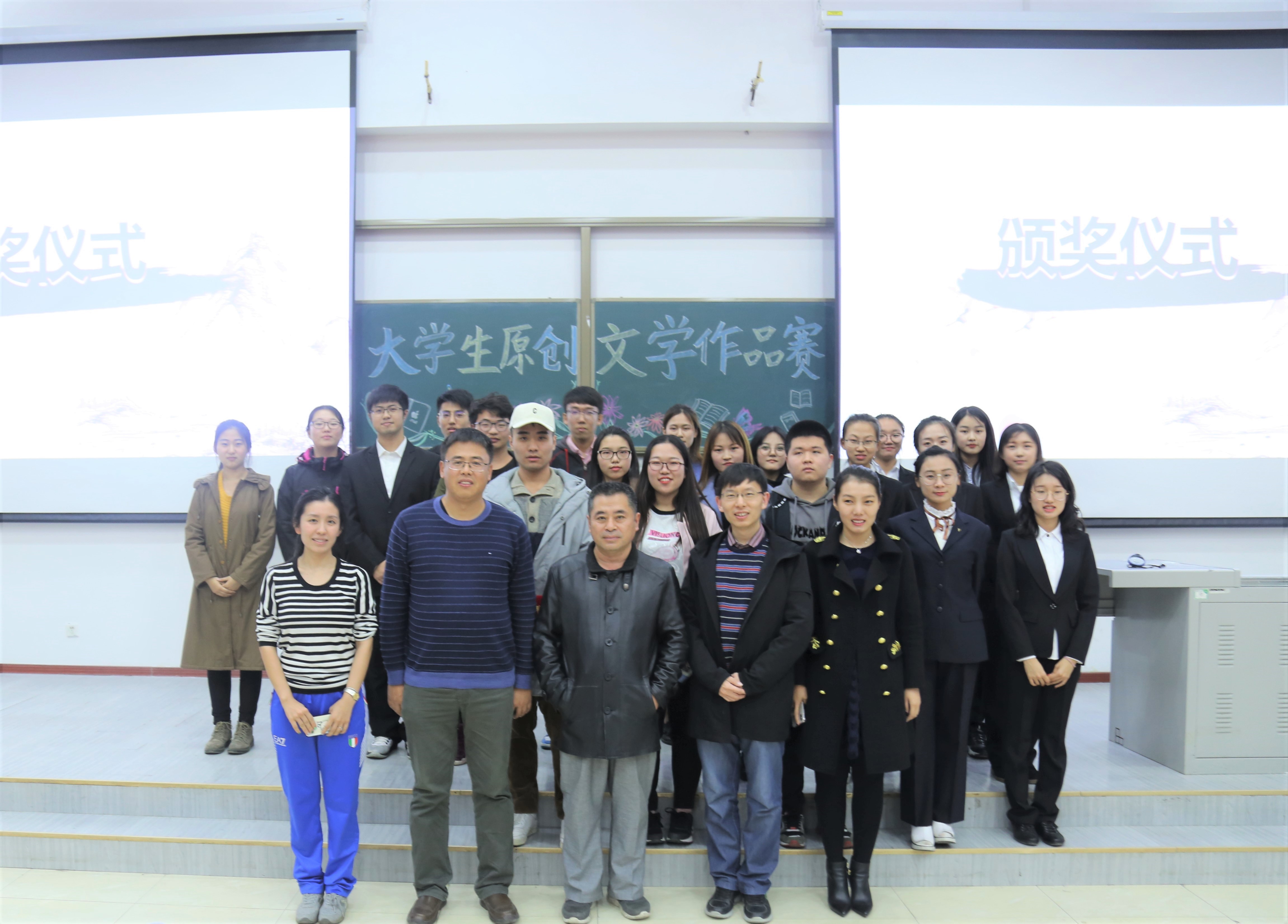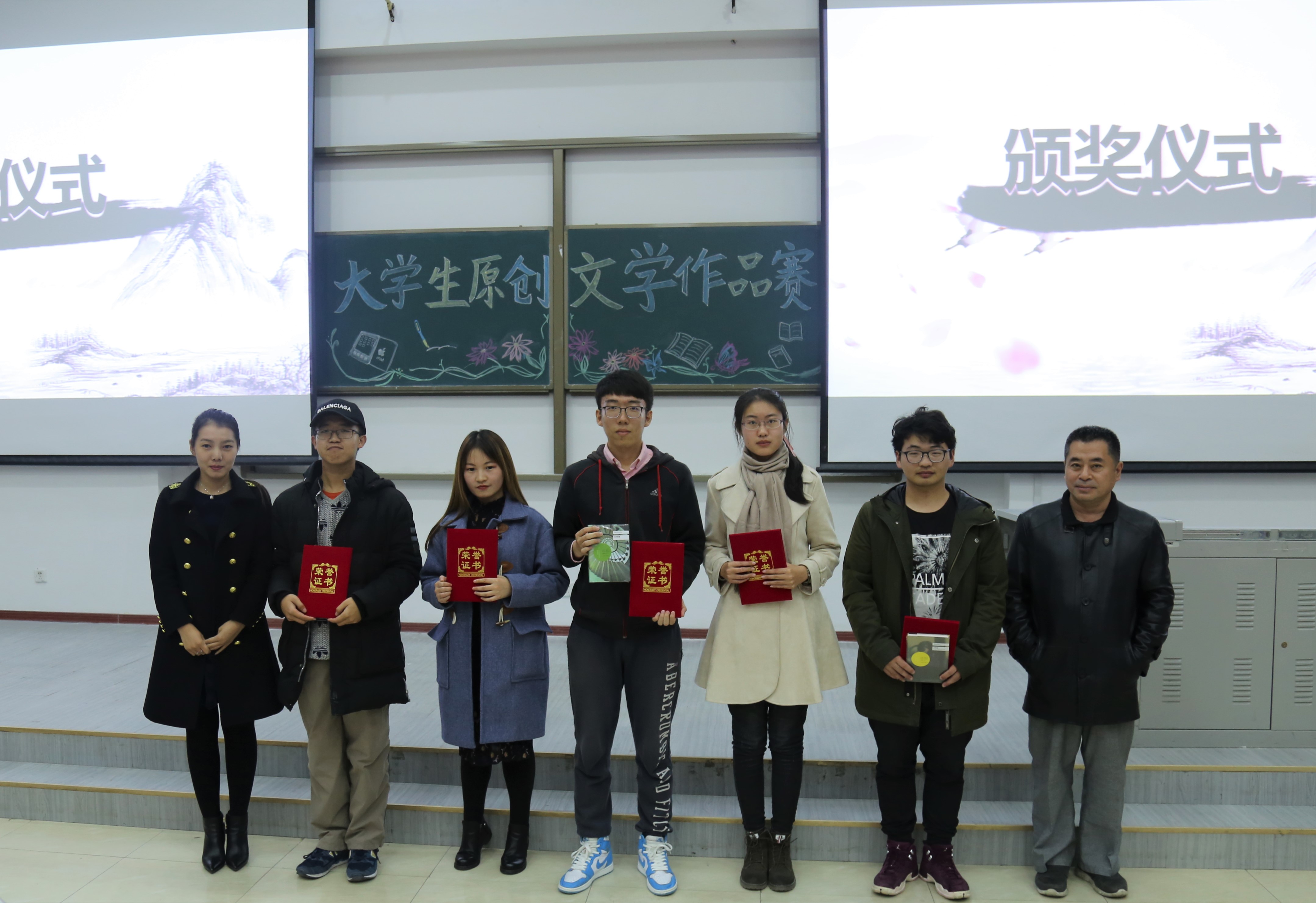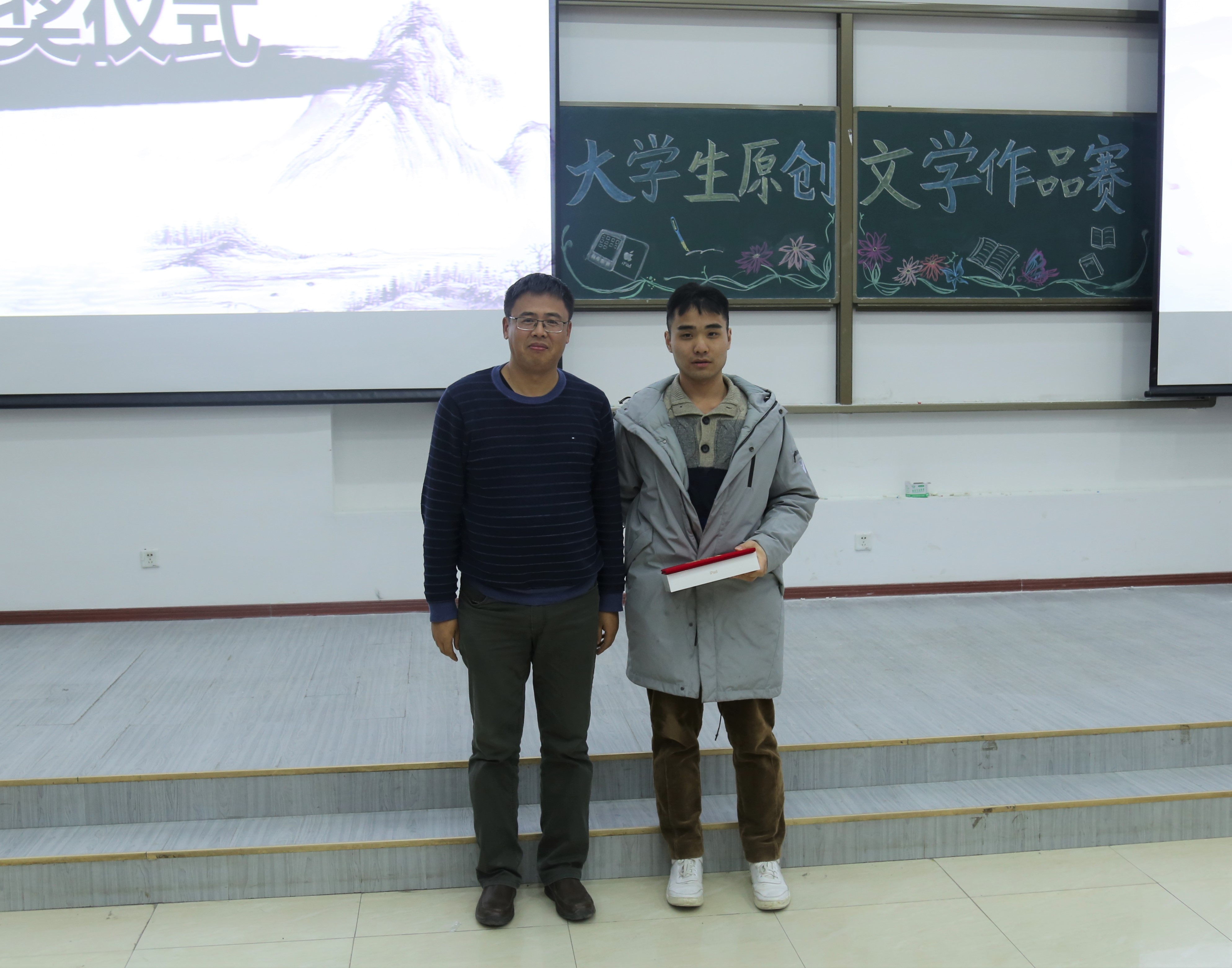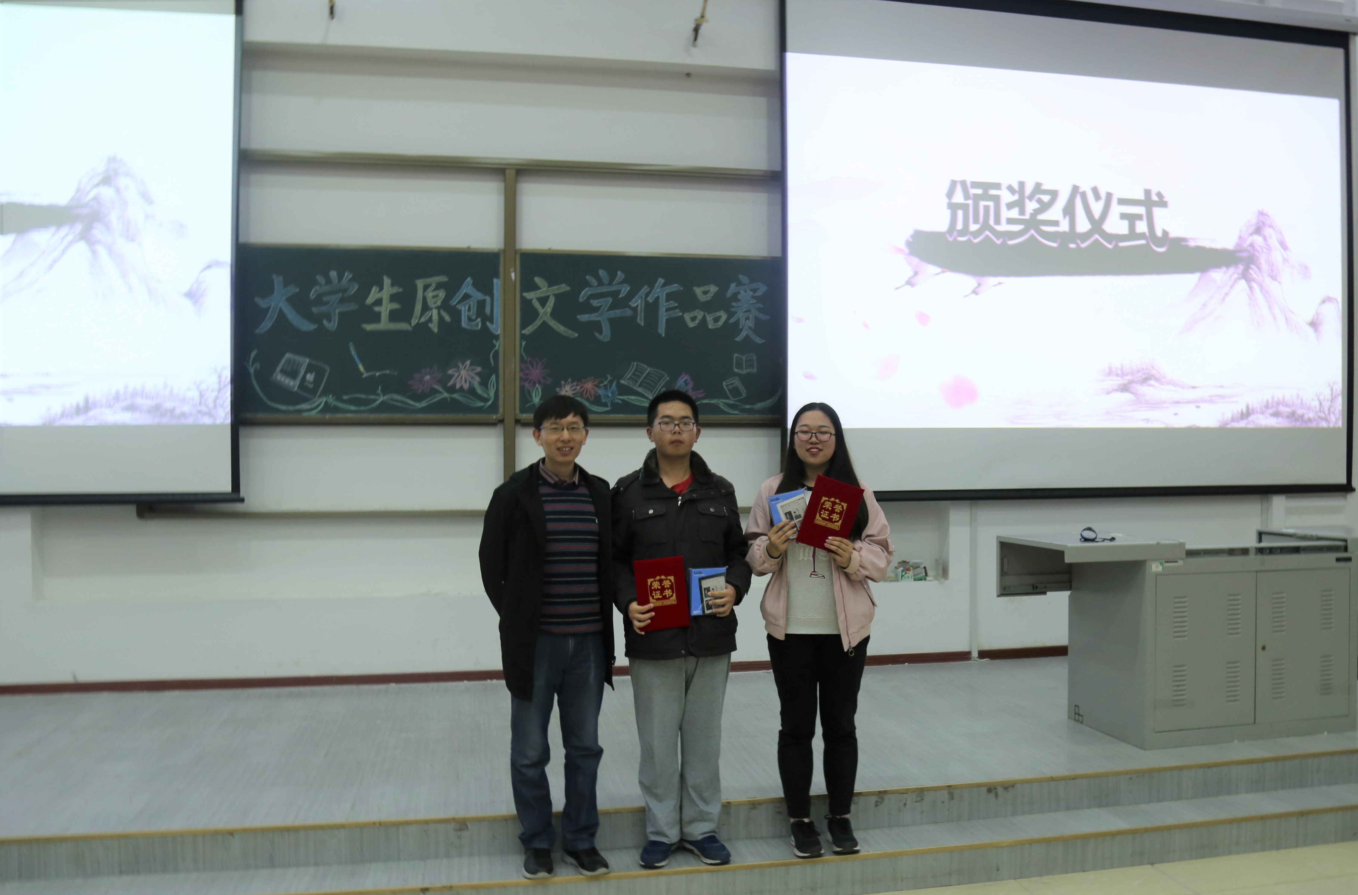 活动至此,评委老师们离开主会场,前往分会场为同学们的作品进行打分。评委老师在细细地品读了参赛选手的作品,对其慎重地给出了自己的判断。评阅过程中,老师们对选手的作品互相发表了自己的见解,对于同学们文学创作的能力给予了充分的肯定,并对部分二轮参赛作品表达了高度的赞扬与欣赏。与此同时,活动主会场进行了文学小常识问答,现场同学积极参与,主持人也对各个问题进行了不同程度的扩展,既丰富了同学们的文学知识,又很好地培养了同学们对于文学的兴趣。在文学小常识问答环节途中,还有不少参赛选手上台与同学们分享了自己的创作灵感以及自身对于文学的一些独到的见解。此外,数学学院学生会副主席王锴强也上台同大家一起分享了自己对文学与数学两者相通性的一些看法。经过评委老师对第二轮比赛作品的打分,结合第一轮的得分情况,在激烈的角逐之后,主持人公布了此次原创文学作品大赛的最终结果。其中,向小吉荣获吉林大学大学生原创文学作品大赛一等奖;苗睿、李懿函荣获吉林大学大学生原创文学作品大赛二等奖;李志强、王文聪、张炜煊荣获吉林大学大学生原创文学作品大赛三等奖;王鑫、陈广兴、李殊雨、郭涵、程凯、李晨筱荣获吉林大学大学生原创文学作品大赛优秀奖。数学学院谢敬然老师、曹馨月老师、文学院李菲老师、文学院李明晖老师和文学院姜勇老师分别为获得优秀奖、三等奖、二等奖和一等奖的参赛同学颁奖,并与其一同合影。让我们向这些获奖选手送上真挚的祝贺,也感谢相关工作人员及评委老师的辛勤付出。本次大学生原创作品大赛圆满结束!