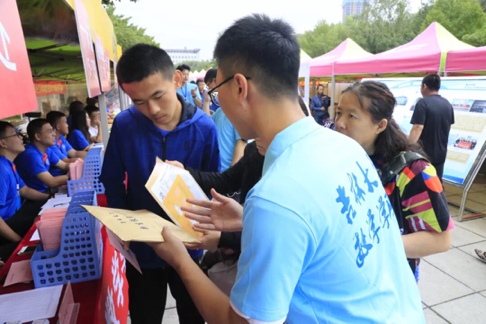虽然今天的天气时而艳阳高照,时而下雨,但大家仍积极面对工作,迎新工作按流程有条不紊地进行。雨水也无法阻止新同学前来报到的脚步,同样无法熄灭老师和学弟学妹的热情。新同学向学长学姐们提出了很多关于学习和生活的问题,学长学姐们一一作出了详细的解答。报道之后,每个新同学都在学院“欢迎数学学院2019级新同学”的标牌上签下了自己的名字,并合影留念。