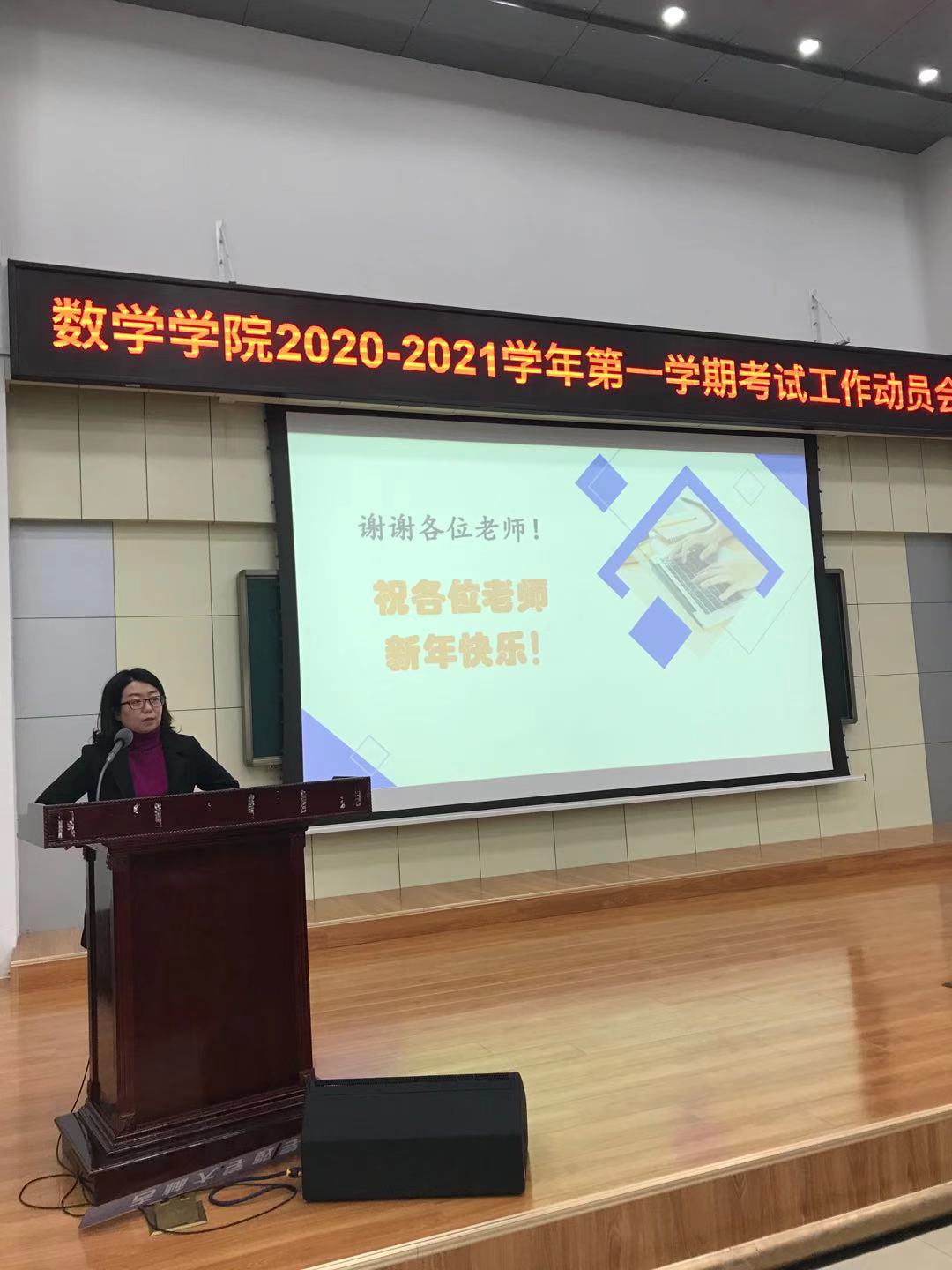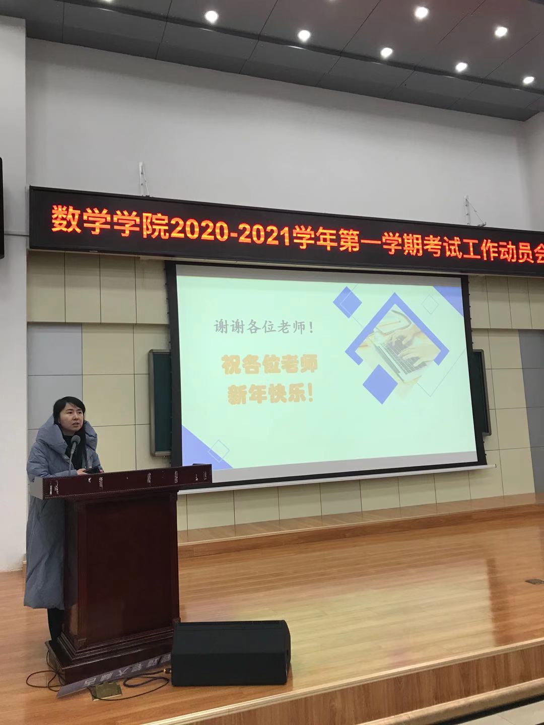 为进一步严肃考风考纪,确保期末考试工作顺利进行,12月28日,数学学院在数学楼二楼报告厅召开2020-2021学年第一学期考试工作动员会,就本学期期末考试工作做出布置和要求。学院全体教师、教学秘书参加了会议。会议由院长助理王春朋主持。
