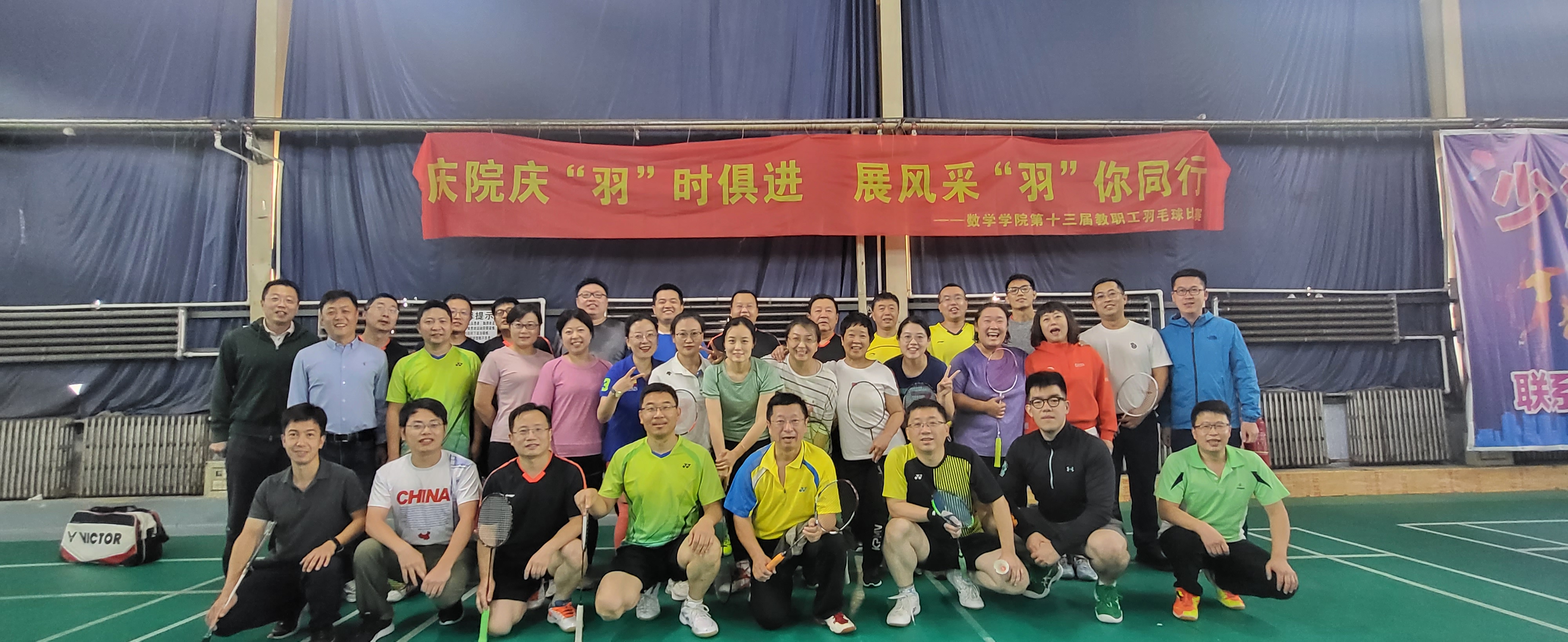 为庆祝吉林大学数学学科成立七十周年,丰富数学学院教职工的业余文体生活,进一步营造良好的工作氛围,提高学院羽毛球运动水平,数学学院于2022年9月24日在爱尚羽毛球馆成功举办“数学学院第十三届教职工羽毛球邀请赛”。
