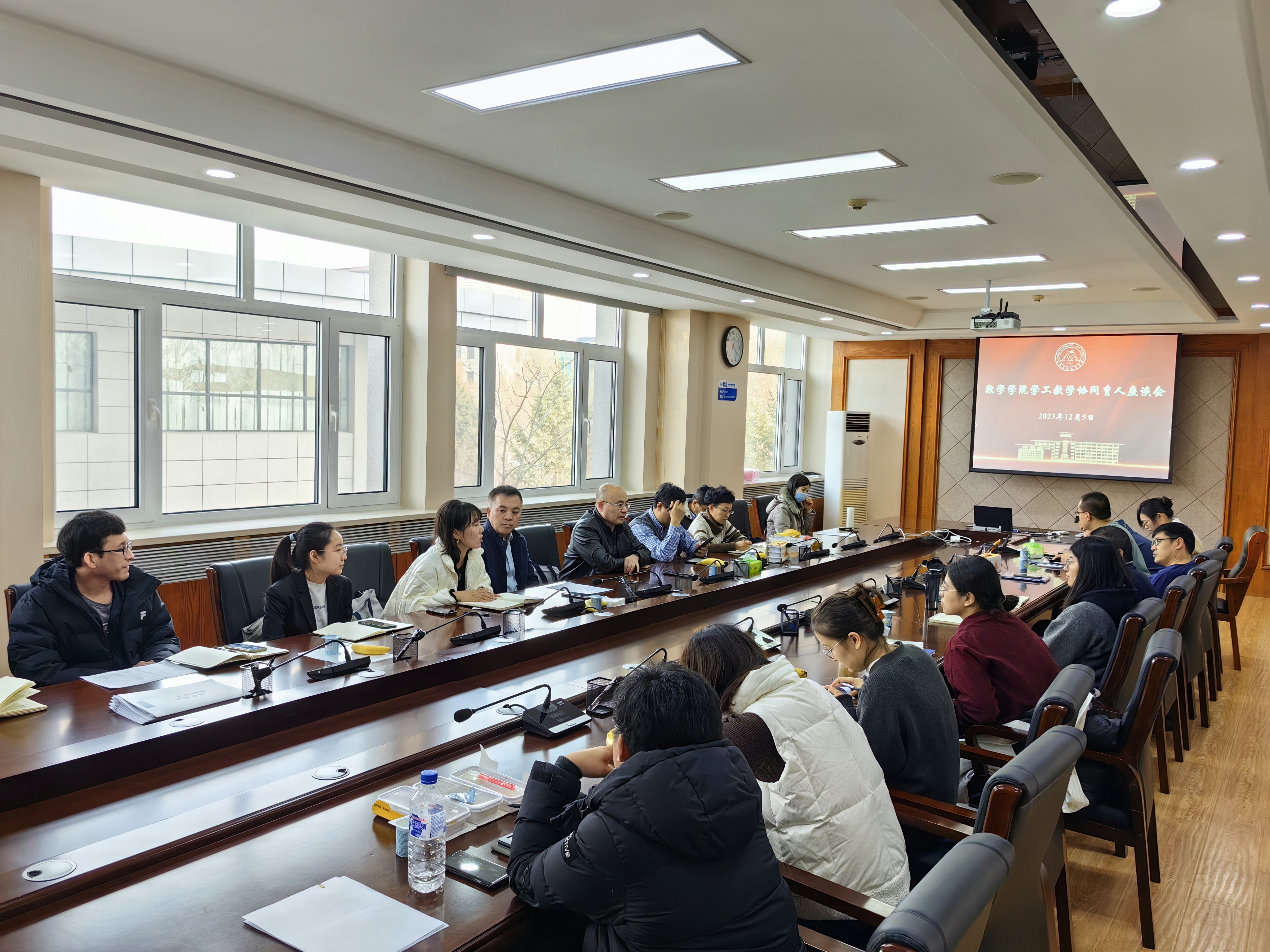 为进一步强化本科生班主任队伍建设,充分发挥班主任与辅导员协同育人工作效能,数学学院于2023年12月5日中午在数学楼三楼会议室召开数学学院“学工教学”协同育人座谈会。数学学院党委书记王春朋,党委副书记兼副院长范庆文,副院长韩月才、生云鹤、大一大二全体本科生班主任、本科生教学工作办公室全体人员及全体本科生辅导员出席会议。会议由学院党委副书记兼副院长范庆文主持。