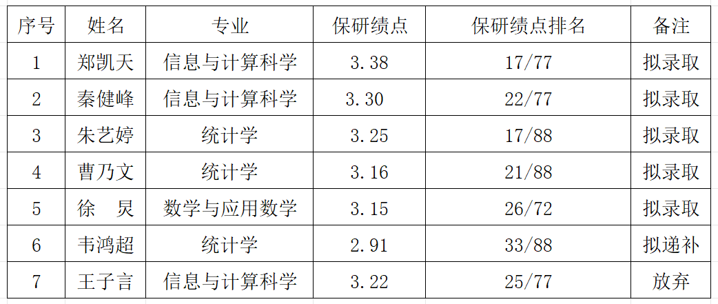 现将数学学院2025年国家优秀中小学教师培养计划专项推免生拟推免名单公示如下: