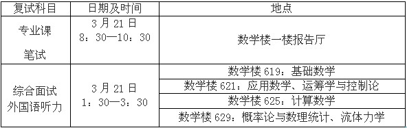 根据国家教育部2013年硕士研究生录取精神,你的初试成绩已达到今年我校硕士研究生复试标准,请于3月18日—3月20日携带(考生须提交材料)到 数学学院研究生办公室(数学楼425) 报到,进行资格审查(推免生也须提交材料、资格审核时间同上);3月21日到我校数学学院参加复试(复试时间及内容见下表),复试费用为¥100元。逾期者取消复试和录取资格。根据学校具体要求,考生参加复试后可直接到吉林大学前卫南区校医院参加体检(体检要求:空腹、携带小2寸照片一张、体检费若干);