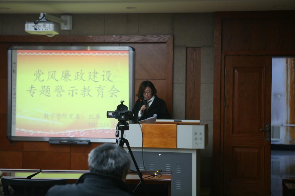 首先,党委副书记兼纪委书记王欢传达了学校李忠军副书记在学校党风廉政建设专题警示教育会上的讲话精神,通报了学校2016年信访反映和纪律审查情况。