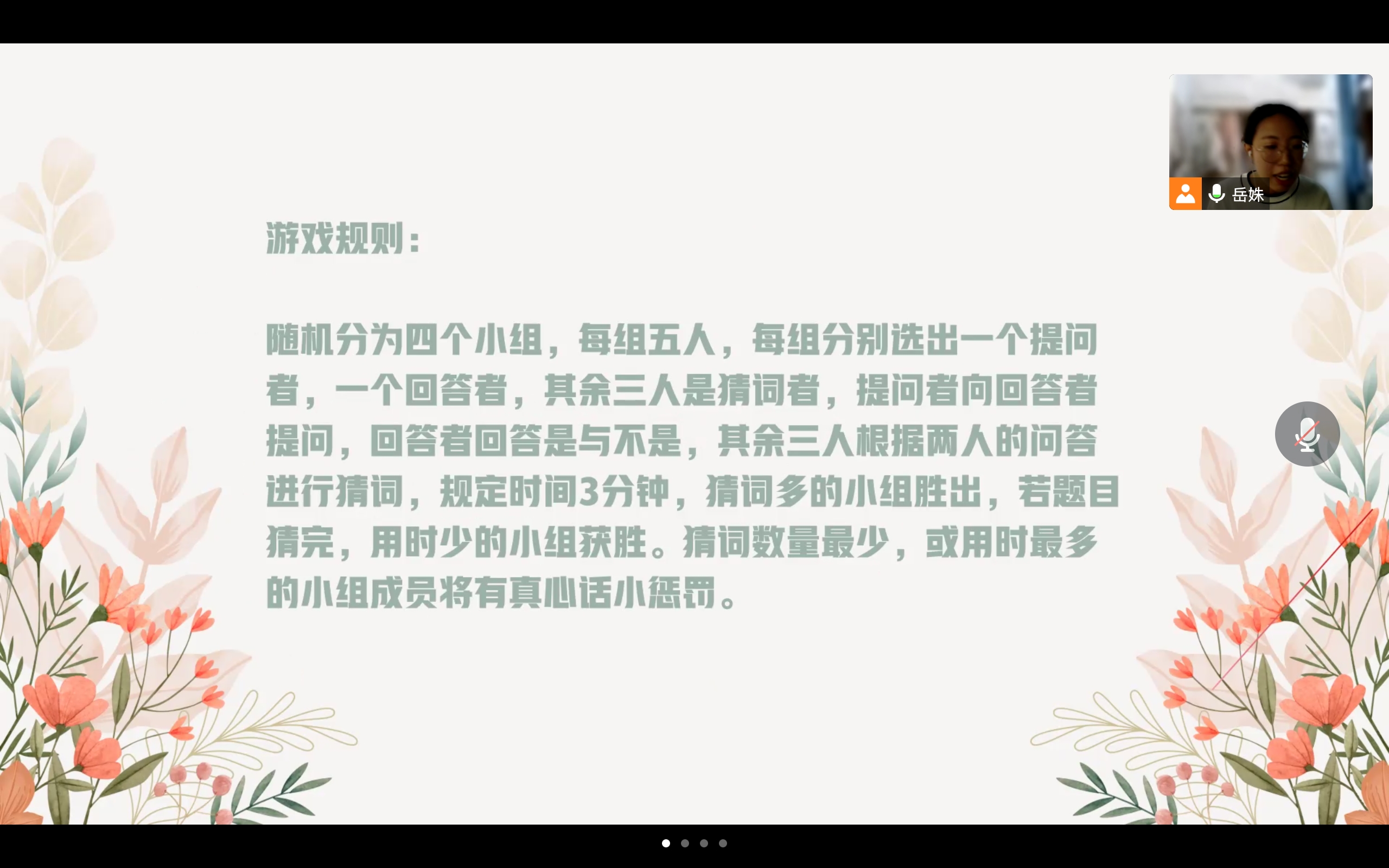在整个新生团体心理辅导活动中,每个班都有自己的特色,其中22级应用数学以及运筹学与控制论专业通过线上的自我介绍,让同学们互相认识并熟悉彼此,拉近了彼此之间的距离;22级基础数学通过猜歌环节让同学们在音乐声中放松下来的同时,也调动了同学们的热情,使同学们积极的参与到了后续的游戏环节;22级应用统计以及保险专业通过观看视频《7个技巧,让你的情绪保持健康!》向班级同学展示了保持情绪健康的小技巧,教会了大家如何与自己情绪和解的方法;22级计算数学专业通过抢凳子小游戏将本班活动气氛推向了高潮,在嬉笑中,同学们纷纷争相加入游戏中来,暂时忘记了学业和科研压力,真正的融入了集体,整个班级呈现出相亲相爱一家人的和睦氛围;22级概率论与数理统计及统计学专业的同学们则通过快乐传递环节促进同学们之间的情感交流,让同学们发现彼此的长处和优点,同学们相互欣赏、互相激励,每个人也更加清楚的认识到了自己,增强了每个同学的信心。在每个班级活动的最后,由班长进行总结,充分肯定大家在活动中的表现,并期待大家在未来的研究生生活中能够勇于展现自我,和睦并愉快的度过研究生生涯。