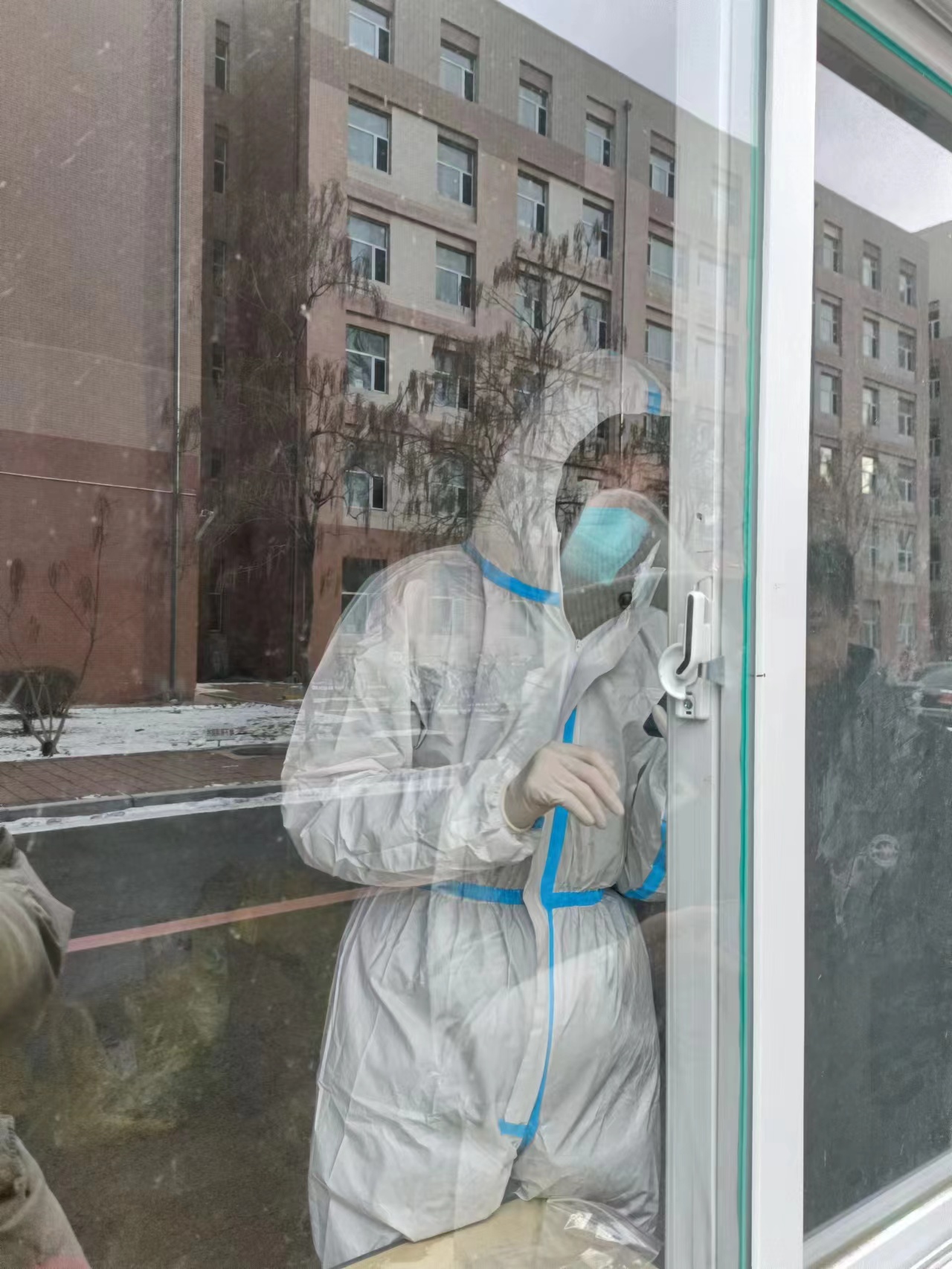 11月30日下午2点,数学学院的40名志愿者们就在各个核酸监测点完成集结,他们在本就厚重的羽绒服外穿上防护服,每个同学们面临的都是将近5小时不能喝水、不能脱下防护服,还要在东北11月的凌冽寒风中坚守,即使手被冻僵,面罩上已有一层薄薄的冰,但是我们的数学大白们仍没有一丝松懈的积极配合着检测点医务人员的工作。2021级研究生杜美璇同学表示:“学校的后勤保障工作经验丰富、考虑周到,十分贴心的为各个大白们准备了暖宝宝和加热鞋垫,即使寒风萧瑟,也没感到十分寒冷。完成了一组又一组同学们的扫码工作,反而有些许兴奋,为自己终于能在这场抗疫持久战中贡献一份自己的微薄力量而开心。”就是这样一个又一个平凡的身影,化作点点星光,照亮着校园里的每一个角落,凝聚起战胜疫情的磅礴力量。