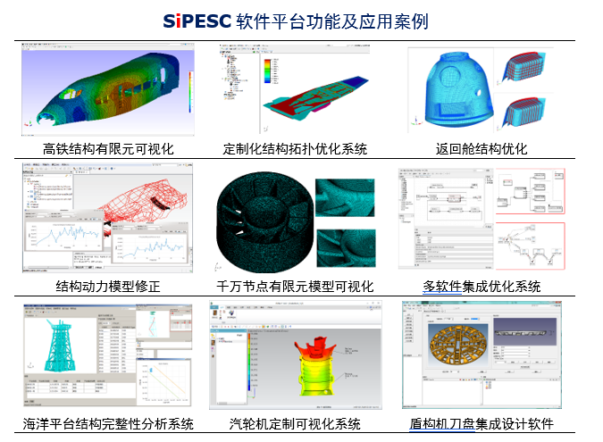 报告摘要:SiPESC是大连理工大学工业装备结构分析国家重点实验室自主研发的面向工程与科学计算的集成软件系统,目的是构建适用于计算力学的科学研究和工程应用的公共服务软件平台,其特色是开放性、集成性和面向大规模计算。构建了包括系统集成、结构分析、优化计算、结构拓扑优化、脚本语言、数字孪生等多个子系统;已成功应用于航天、航空、核电、船舶、高铁等领域型号研发。平台将以共享/开源/定制等方式向研究单位、科研人员及企业提供技术支持和服务。