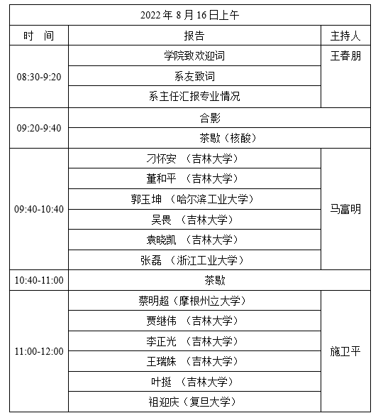 报到地点:吉林省南湖宾馆主楼
