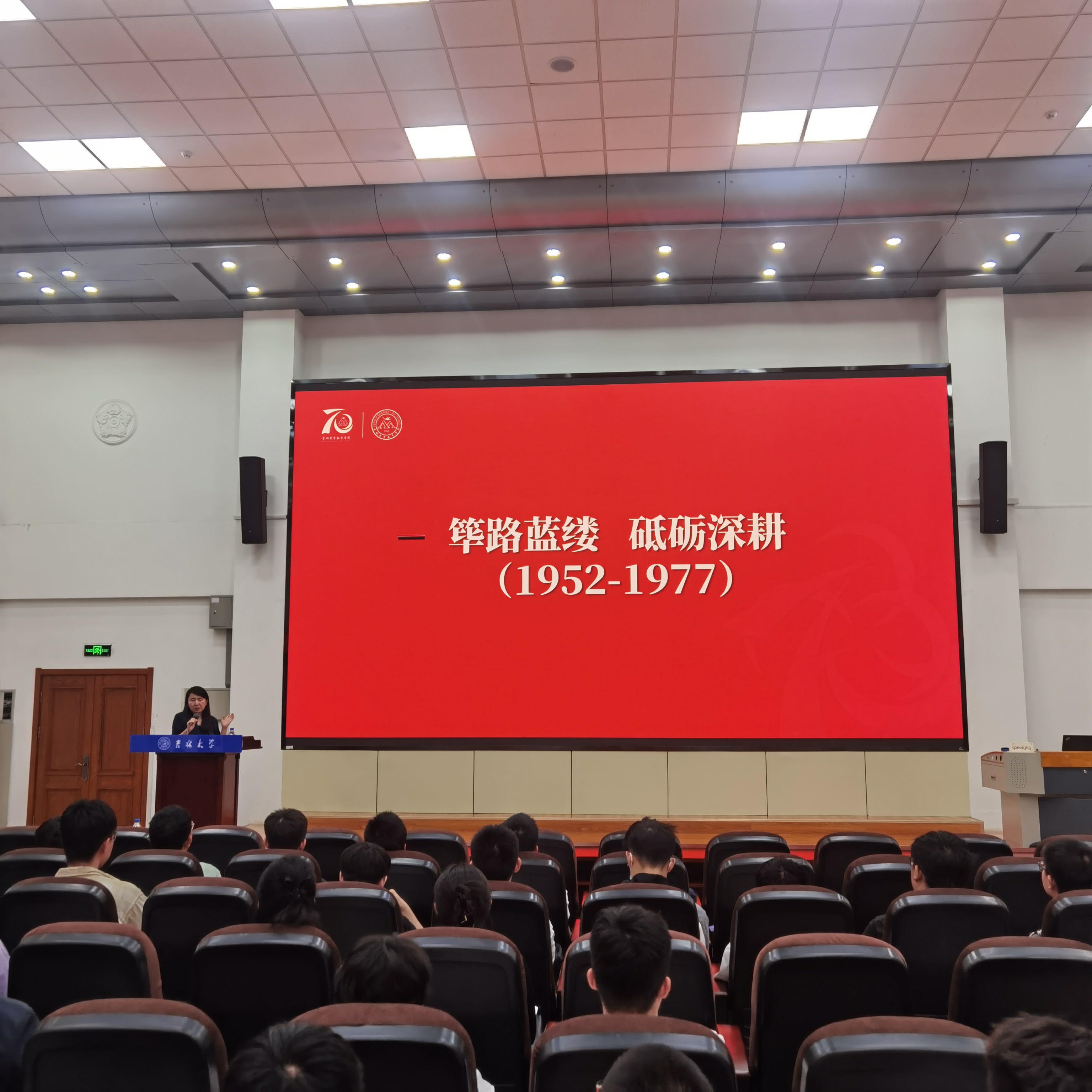 张然教授代领同学们回顾了吉林大学数学学科70余年的发展历程,为大家阐释了一代又一代吉大数学人始终坚守的“踏实真诚 坚韧担当”的精神。