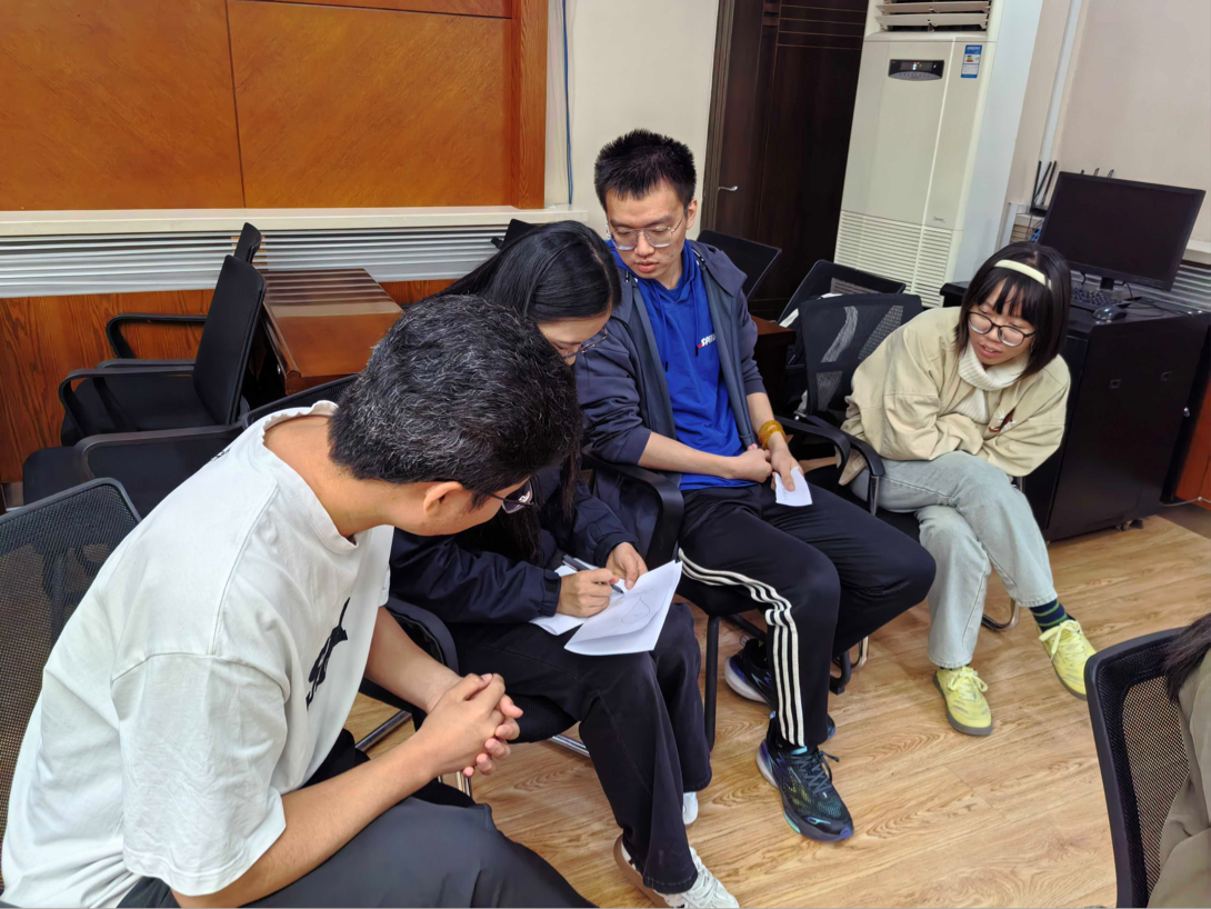 活动伊始,同学们被随机分为若干小组。在“暖身”活动中,每位同学为自己取了一个小组昵称,并简要介绍了自己的兴趣爱好和当下的心理状态,迅速拉近了彼此距离,营造了轻松的交流氛围。